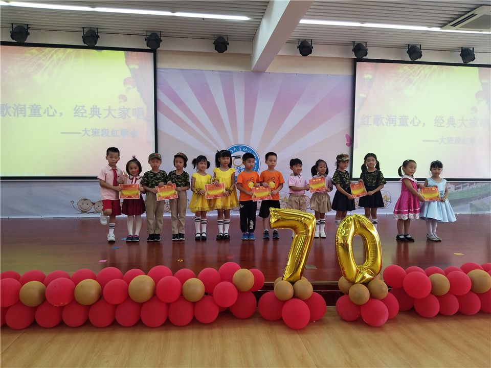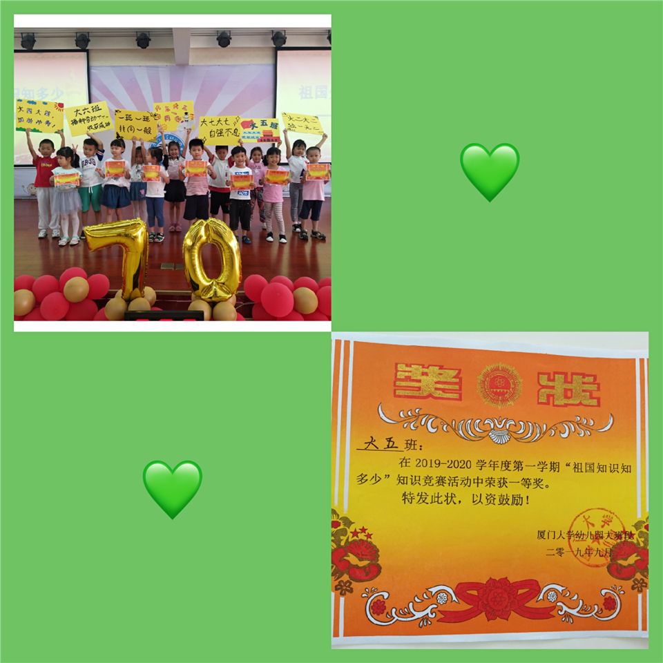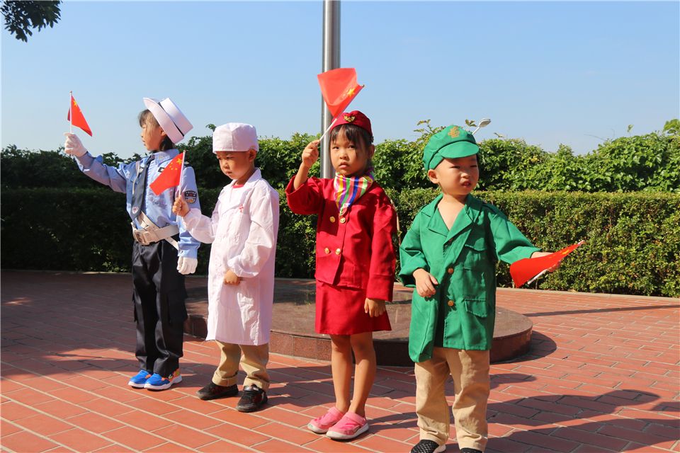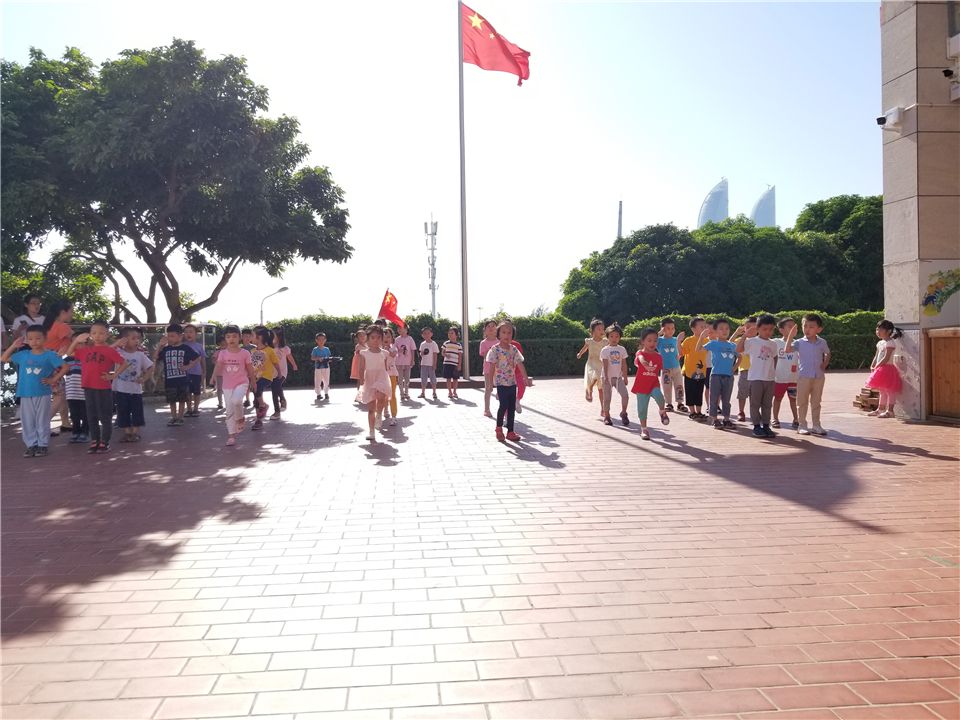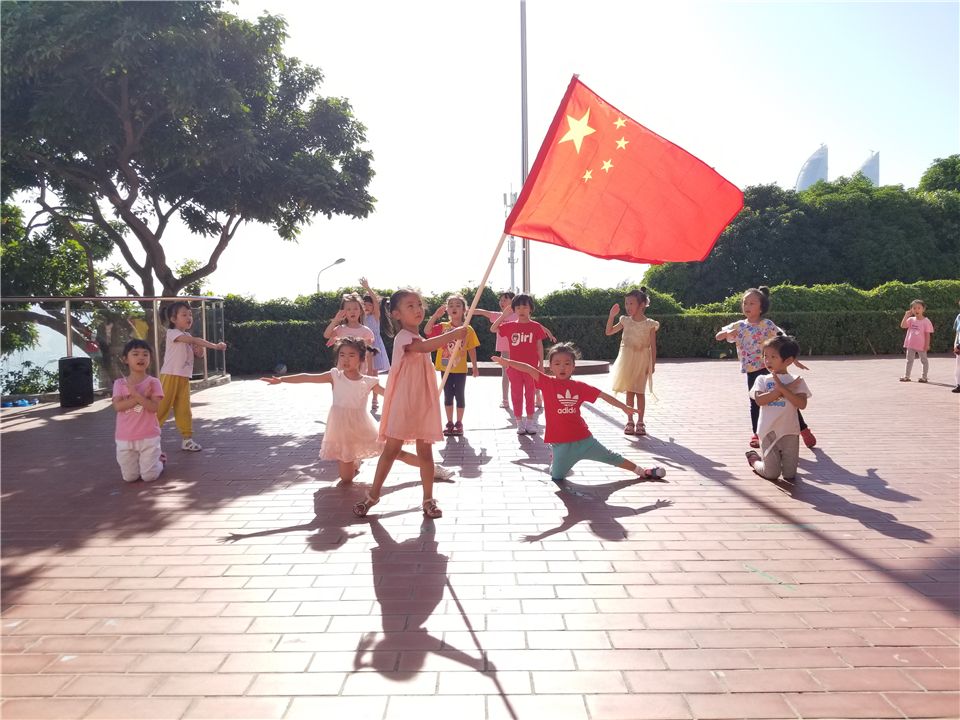 一曲“五星红旗迎风飘扬,胜利歌声多么嘹亮……”响彻厦大幼儿园的上空,大五班的孩子们正用他们的歌声、舞蹈表达着对祖国的热爱,向伟大祖国70华诞献礼。