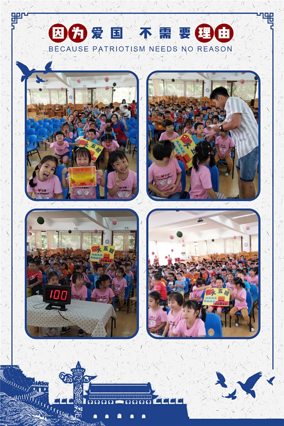 国庆节是祖国妈妈的生日,也是对孩子们进行爱国主义教育的好时机,通过一系列的活动,孩子们表达着对祖国妈妈深深的祝福。“祖国妈妈,我爱您!”这是每个孩子小小的真切的呼唤,也是最感动的祝福。在为祖国妈妈庆祝生日的一个个、一次次活动,相信爱国主义的种子已经在他们幼小的心中生根、发芽,衷心祝愿我们的祖国更加辉煌、更加美好!