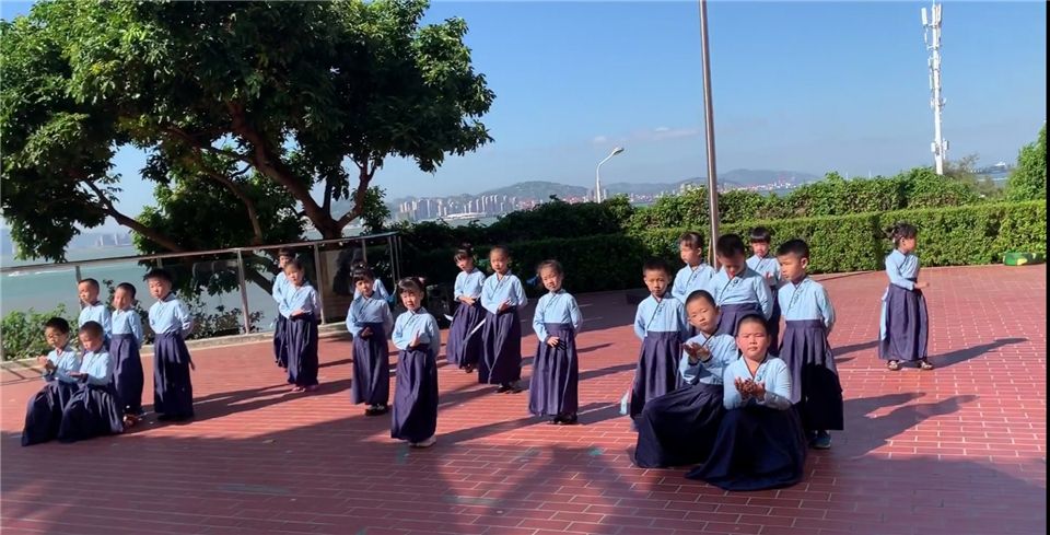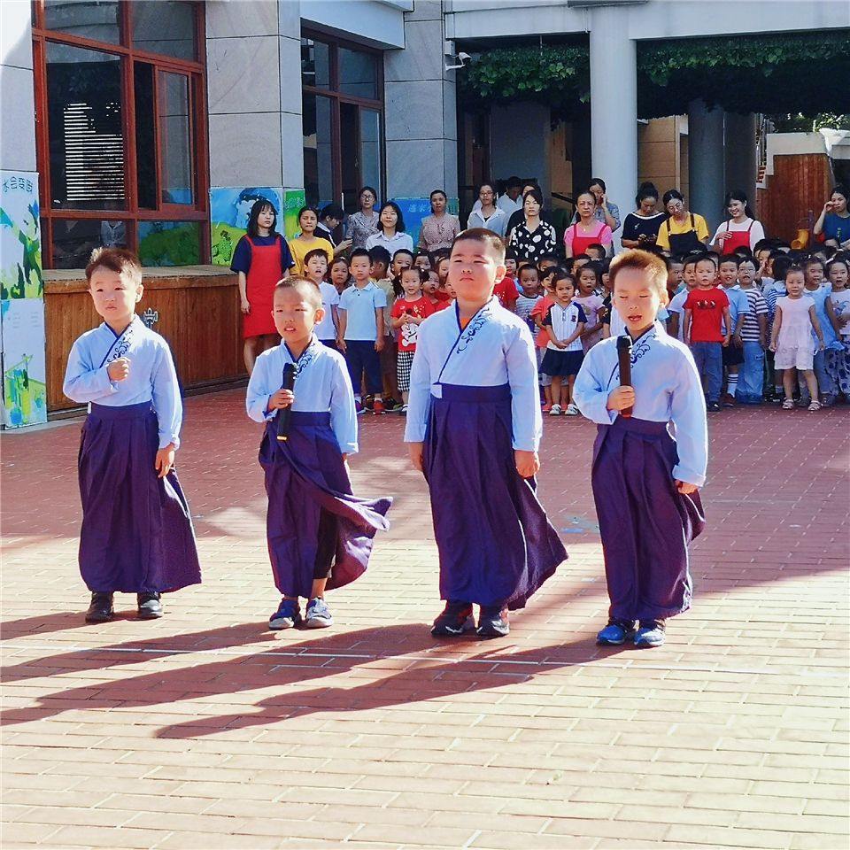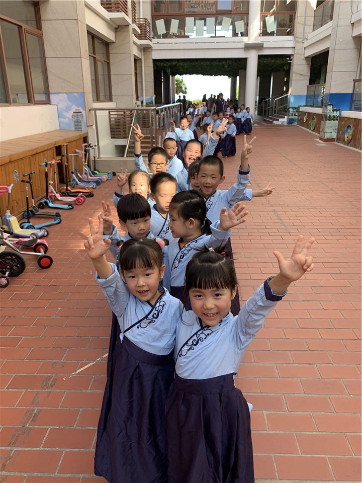 瞧,大四班的小朋友们正穿着中华民族的传统汉服向我们走来,一张张纯真的笑脸上依稀可见古时孩童的模样。