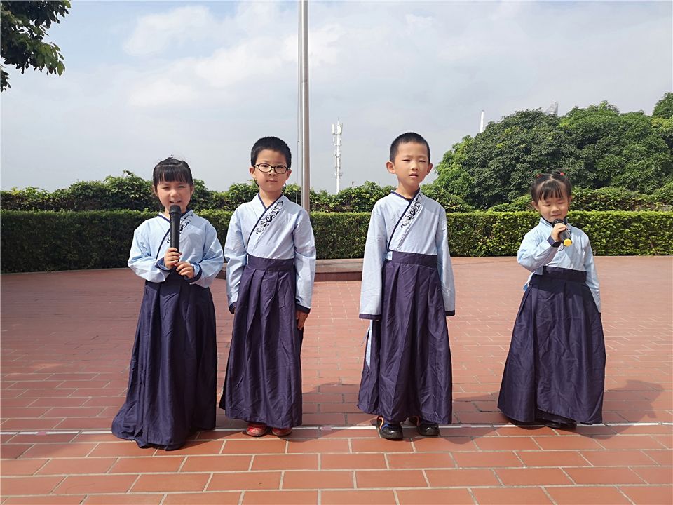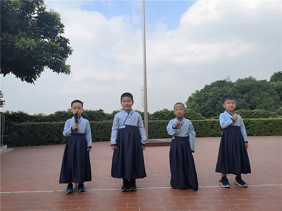 也许有的小朋友还不知道重阳节的由来,主持人在国旗下向小朋友们普及了一下有关重阳节的知识。