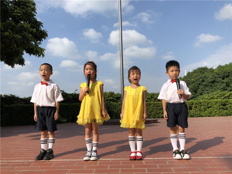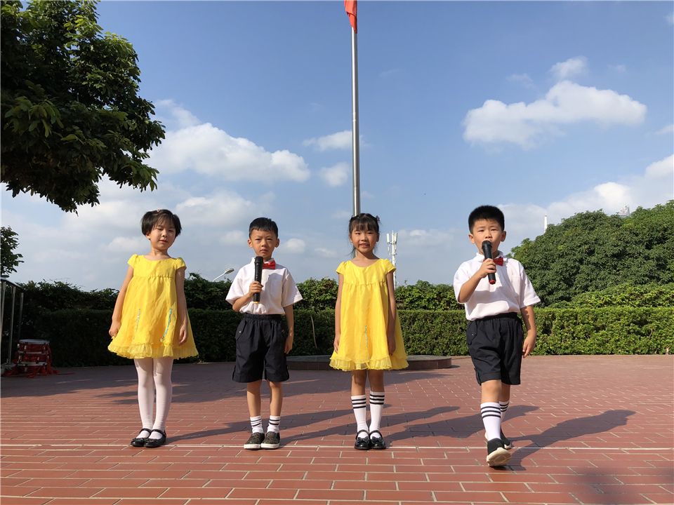 四位小主持人笑颜灿烂,声音宏亮的宣布升旗仪式现在开始!