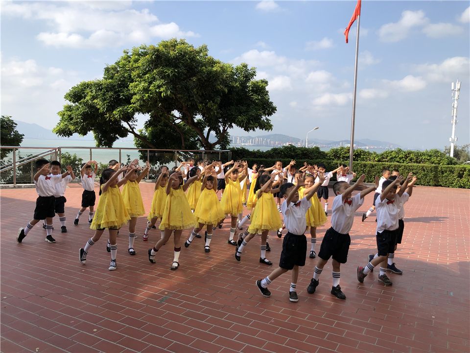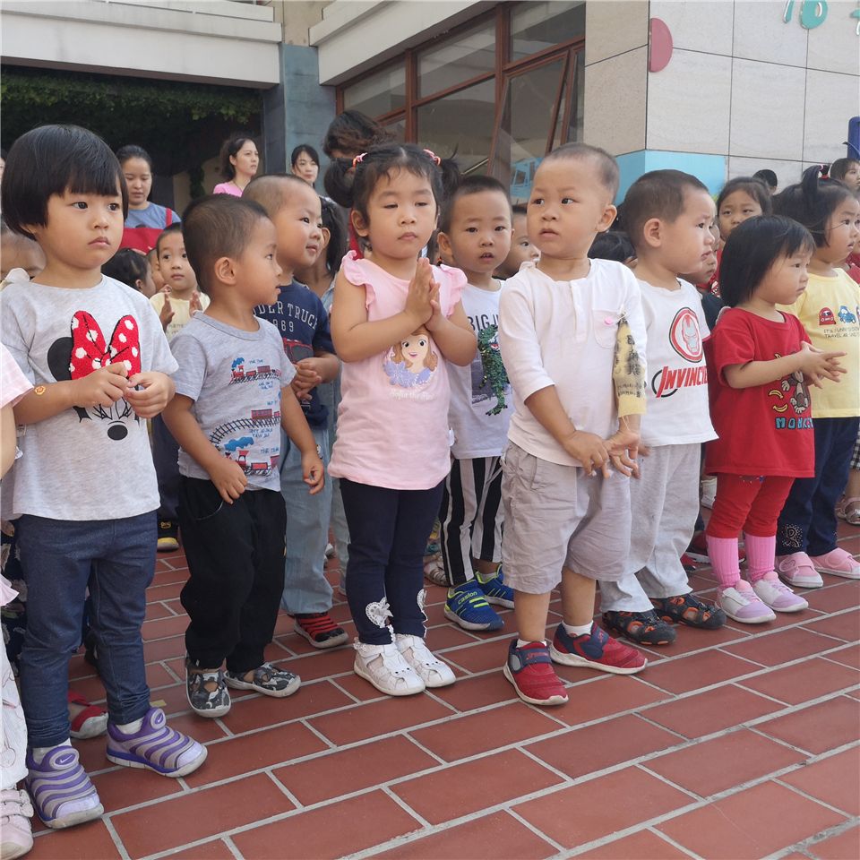 紧接着中班弟弟妹妹活泼的带动跳,刚入园的托小班弟弟妹妹们在这热闹气氛的感染下,也摆脱了哭闹依恋的情绪,在老师的带领下,站着整齐的队伍睁大眼睛好奇的观望着。