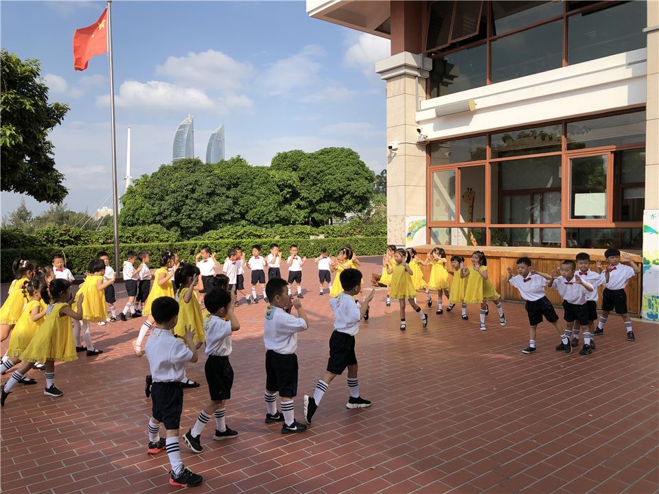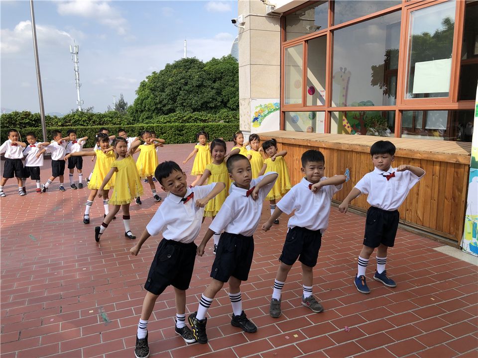 我们大三班还向全园老师和小朋友展示了我们最喜欢的歌表演《咱们从小有礼貌》,赢得了老师和小朋友们的阵阵喝彩!