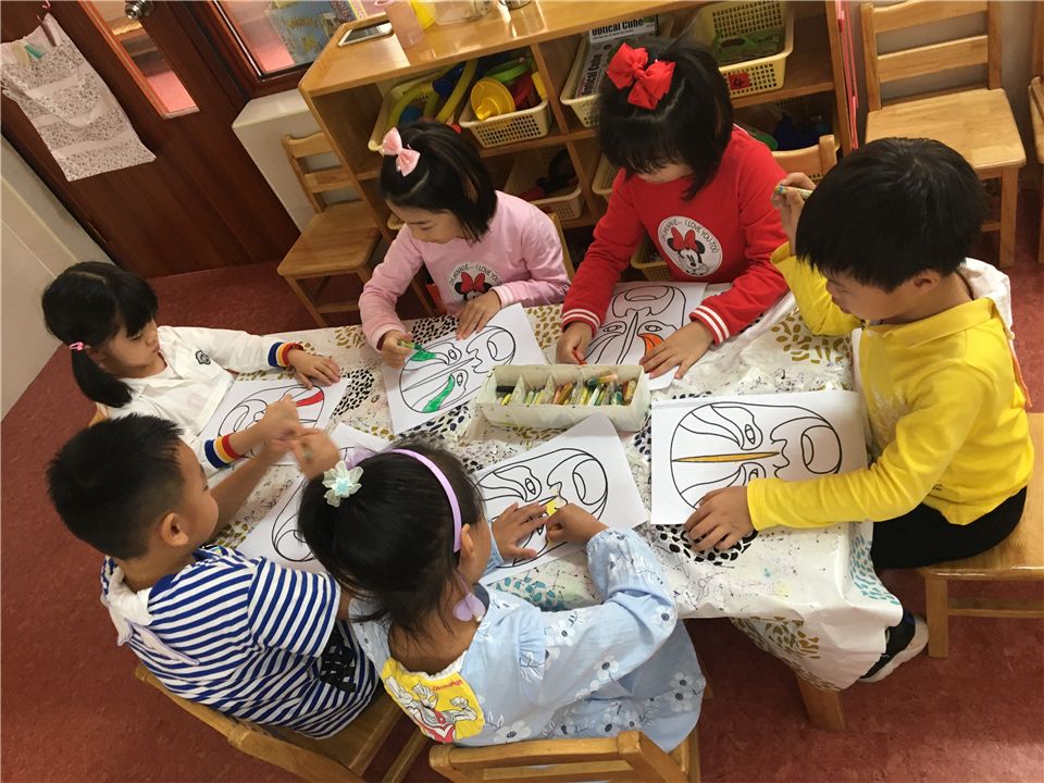 各色各样的脸谱把我们给吸引了,我们超级想做一个属于自己且独一无二的脸谱。陈老师我们准备了脸谱的底图,简直太棒了!我们可以根据自己的喜好,对脸谱进行颜色搭配,赋予脸谱独特的性格色彩哦!我们要开始上色咯!