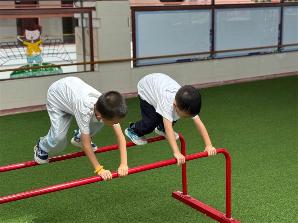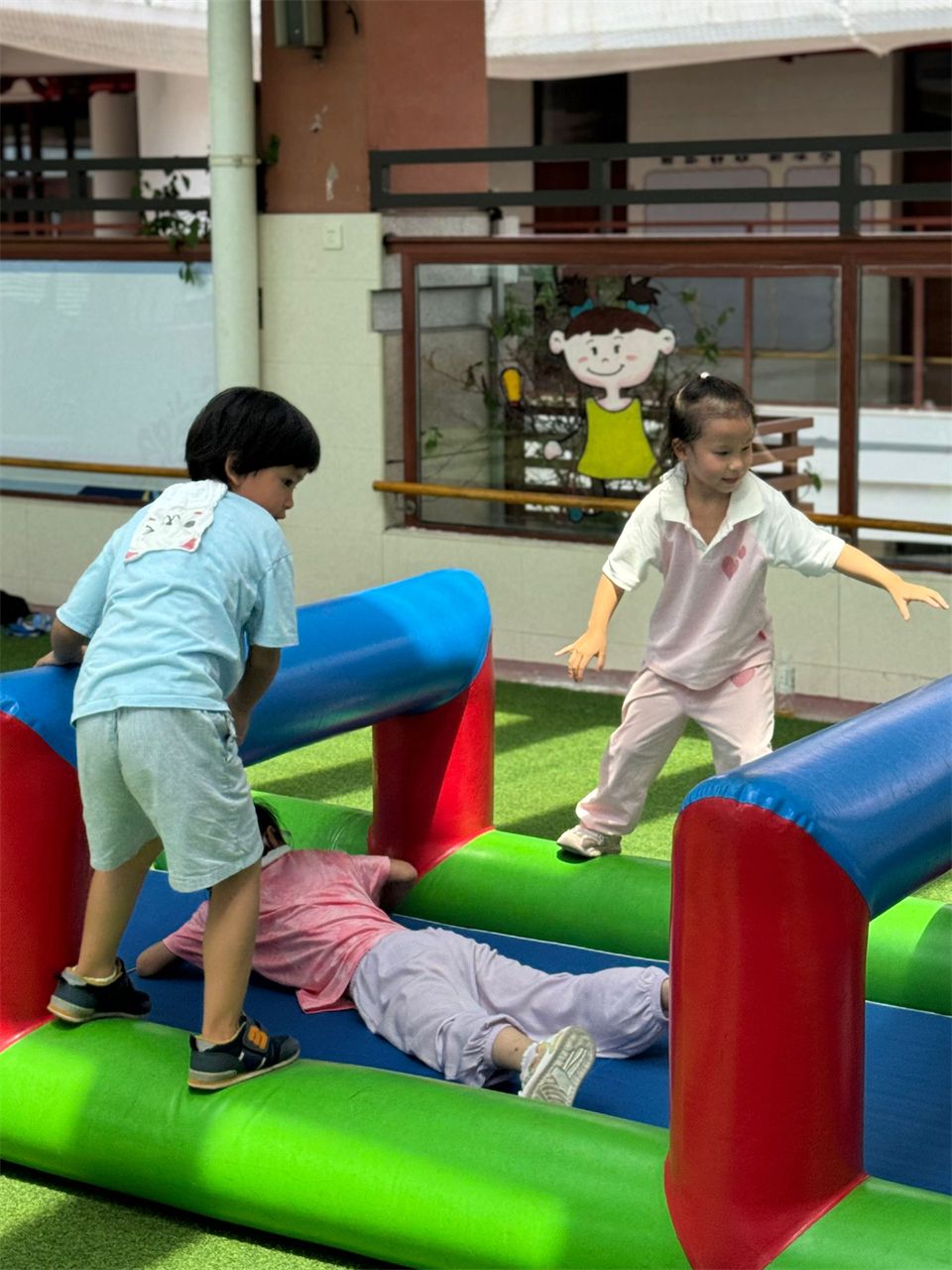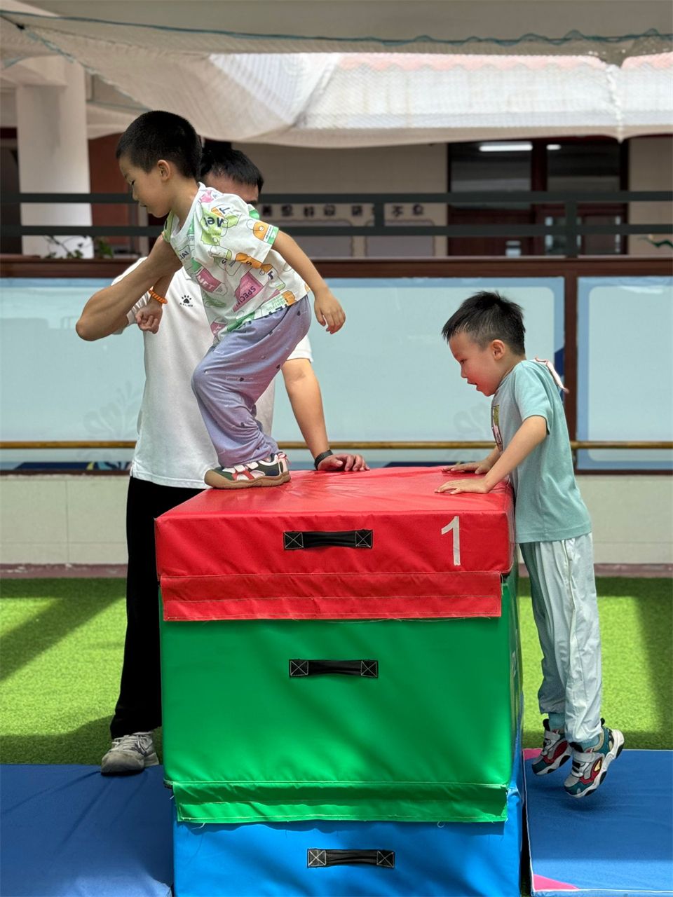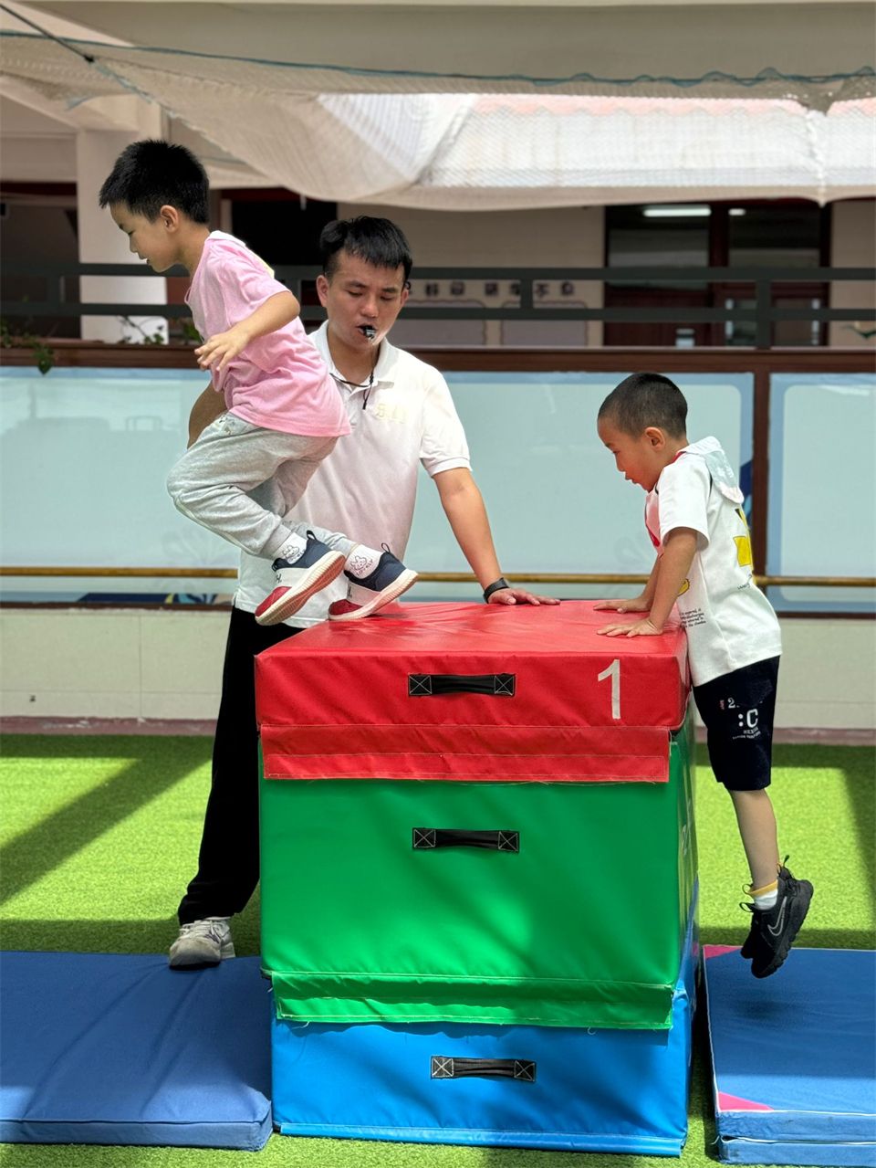 最让萌娃们欢呼雀跃的,莫过于首次体验上体智能课。在小白老师的带领下,他们变身“小小探险家”,钻过彩虹隧道时的欢呼、跳过小跨栏时的雀跃,每一个动作都充满着活力。汗水浸湿了衣角,可萌娃们的笑容却比阳光还灿烂呢!