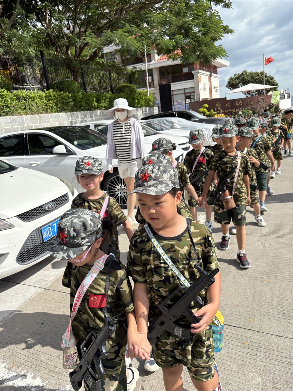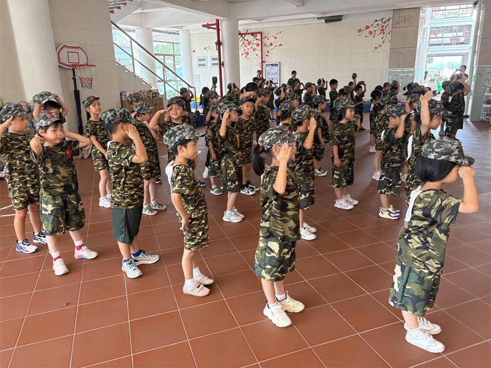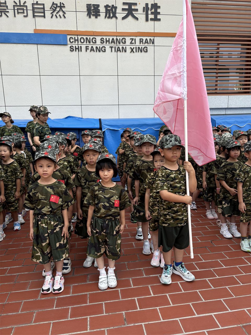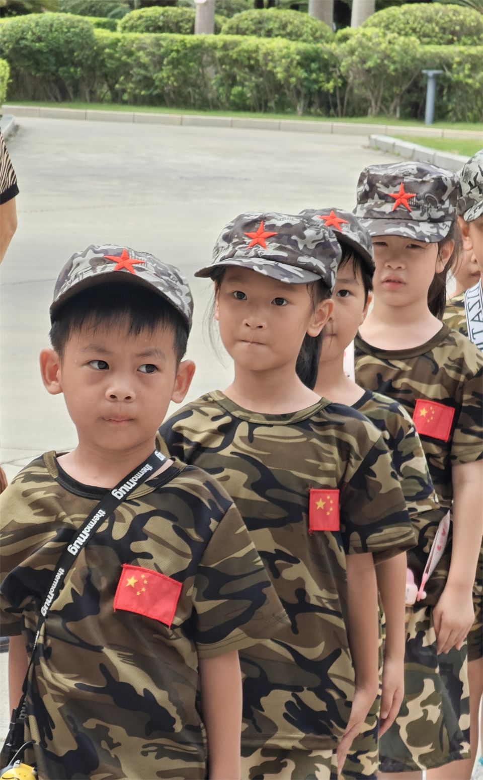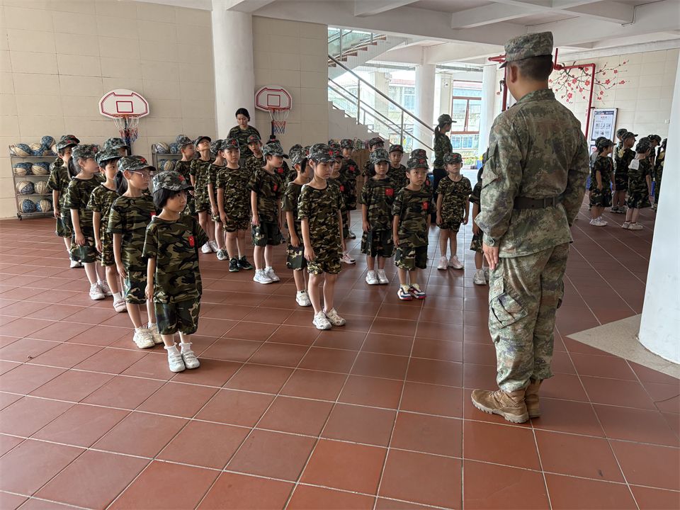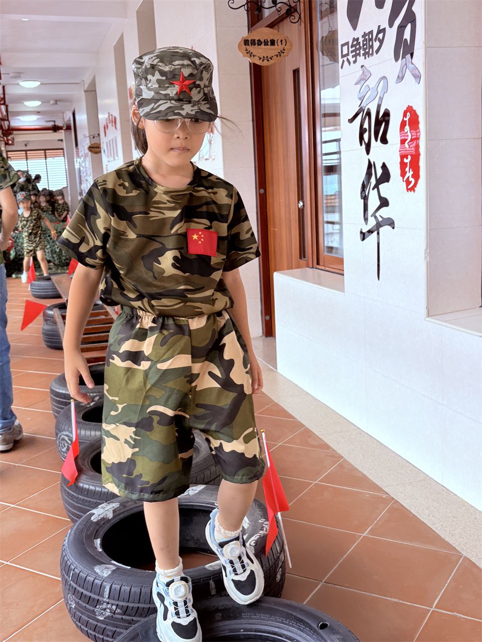 除了精彩的国旗下表演,“小兵成长营”活动也成为了开学初的一大亮点。走进小兵成长营,仿佛置身于一个迷你的军事世界。孩子们身着迷彩服,英姿飒爽,宛如真正的小战士。在这里,他们参与了各种富有挑战性和教育意义的训练项目。从整齐划一的队列练习到模拟障碍穿越,每一项任务都考验着孩子们的意志品质和团队协作能力。在教官耐心细致的指导下,孩子们学会了服从命令、遵守纪律,明白了坚持就是胜利的道理。他们在汗水中收获成长,在困难面前学会勇敢面对,逐渐褪去了往日的娇弱,展现出坚韧不拔的精神风貌。周末孩子们还参观军营,走近士兵们的生活,为本次活动画上圆满的句号。