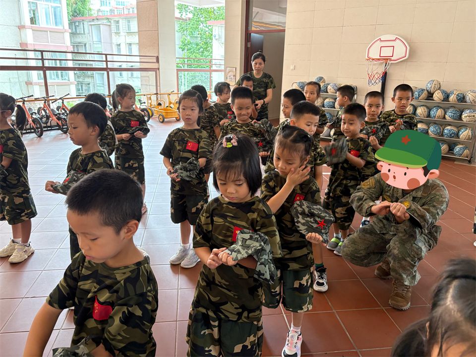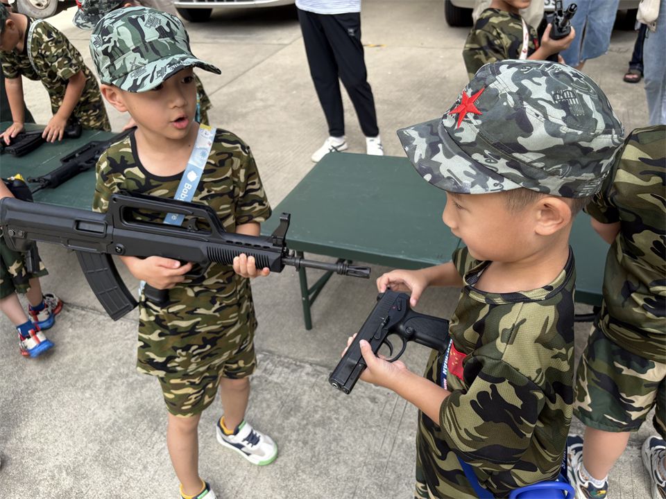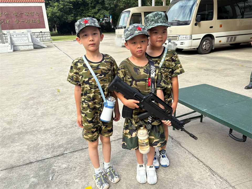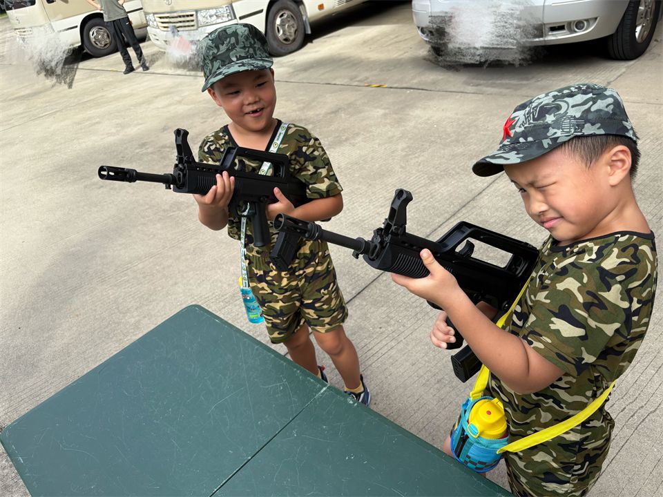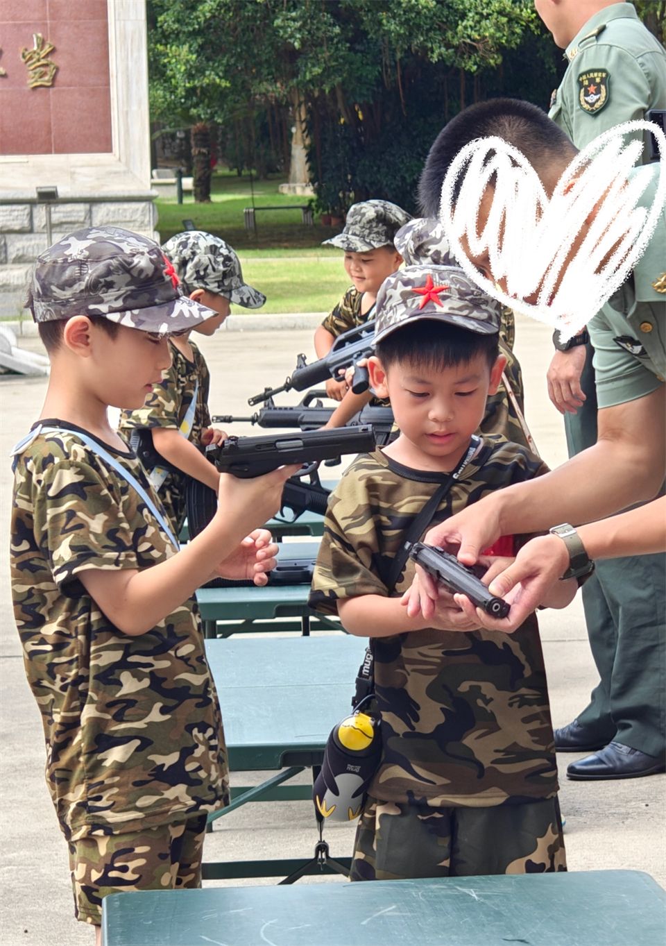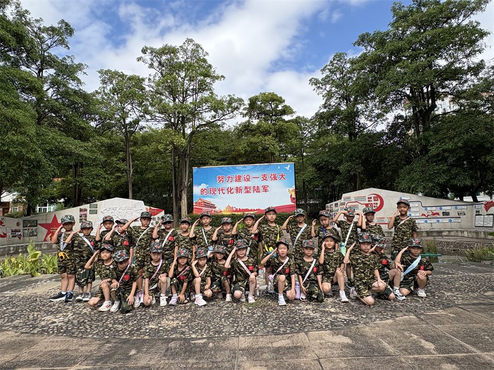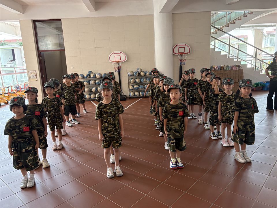 除了精彩的国旗下表演,“小兵成长营”活动也成为了开学初的一大亮点。走进小兵成长营,仿佛置身于一个迷你的军事世界。孩子们身着迷彩服,英姿飒爽,宛如真正的小战士。在这里,他们参与了各种富有挑战性和教育意义的训练项目。从整齐划一的队列练习到模拟障碍穿越,每一项任务都考验着孩子们的意志品质和团队协作能力。在教官耐心细致的指导下,孩子们学会了服从命令、遵守纪律,明白了坚持就是胜利的道理。他们在汗水中收获成长,在困难面前学会勇敢面对,逐渐褪去了往日的娇弱,展现出坚韧不拔的精神风貌。周末孩子们还参观军营,走近士兵们的生活,为本次活动画上圆满的句号。