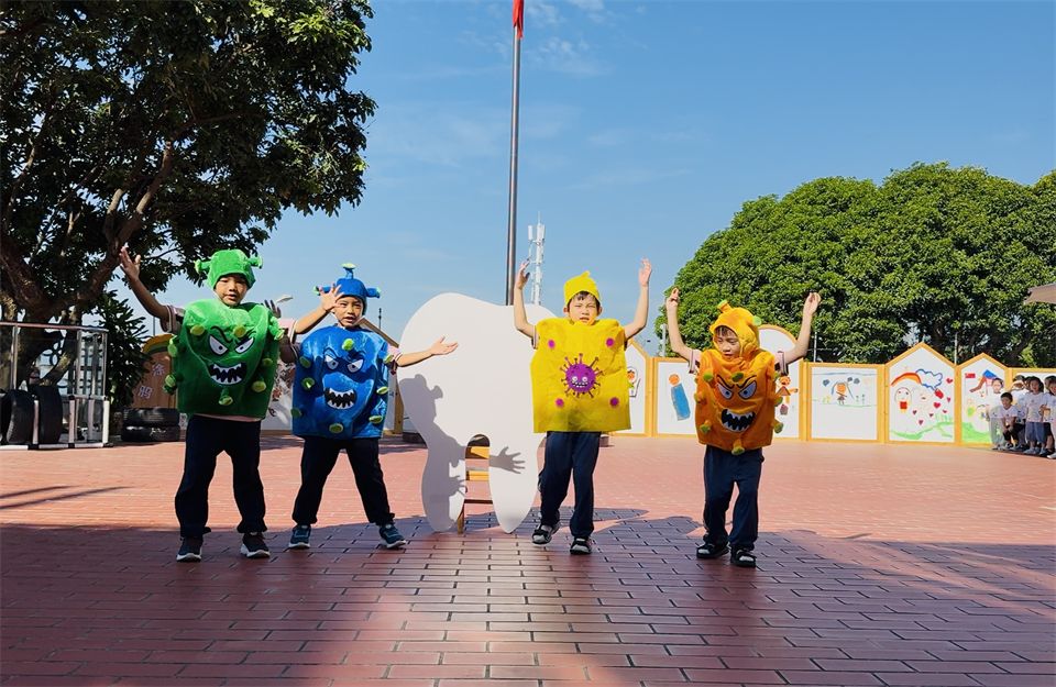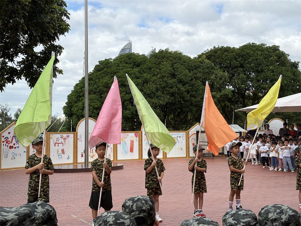 九月还迎来了我们首次升旗,这次升旗全程由孩子们主持,此次国旗下的表演格外引人注目,孩子们用稚嫩却充满热情的声音唱响了《快乐的刷牙歌》。他们一边跟着欢快的节奏摆动身体,一边认真地做出刷牙的动作,仿佛一个个小小的健康卫士。