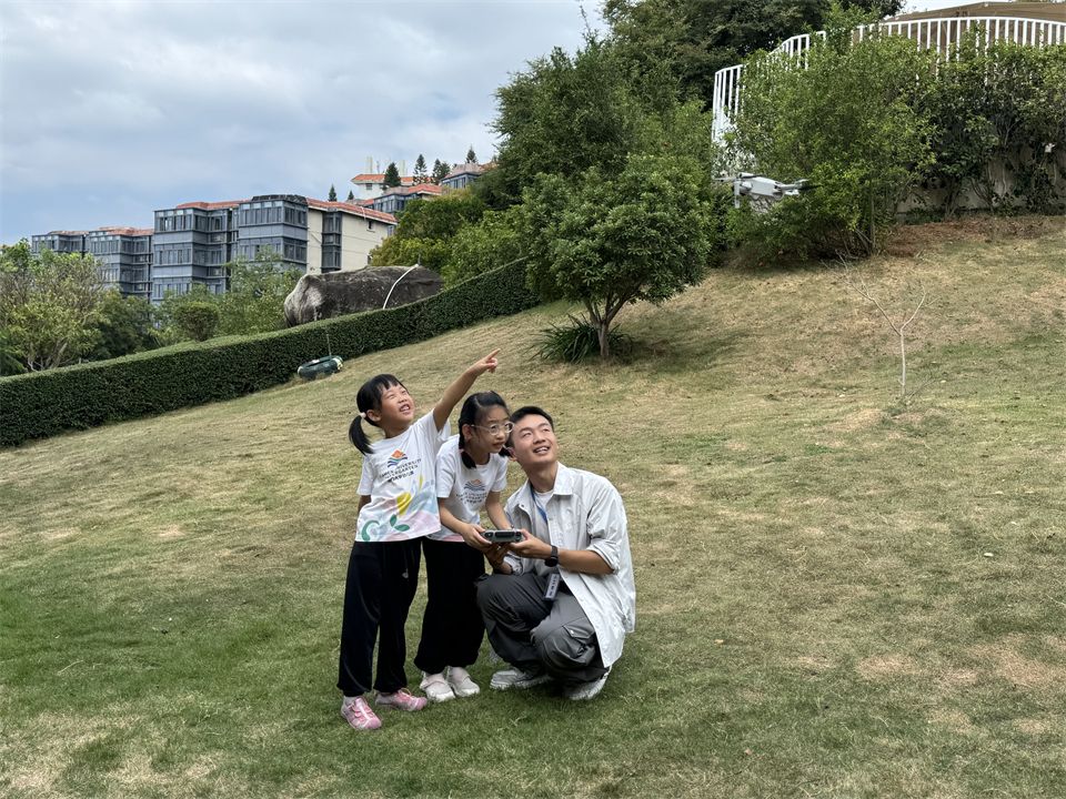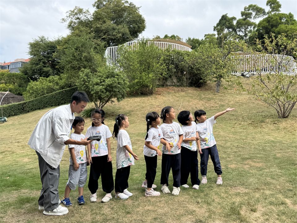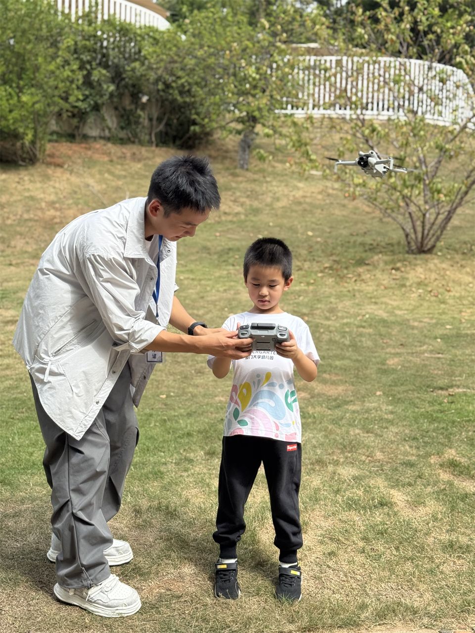 随后,哥哥们还带领大家一块去山坡上体验飞无人机,看着无人机在天空中盘旋、穿梭,萌娃们兴奋地挥舞着小手,眼里闪烁着好奇与向往的光芒……