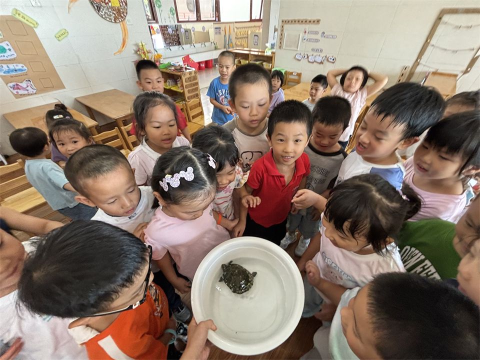 国庆节后的自然角,少了往日的热闹——孩子们从小班喂养至今的小乌龟,不见了!这个消息像一颗小石子,在孩子们心里激起层层涟漪,惊讶过后是藏不住的着急:“小乌龟会不会害怕?”“它能找到吃的吗?”孩子们一得知这个消息之后,火急火燎地去询问了保安、园长妈妈和老师们,一场自发的“寻龟行动”,就此拉开序幕。