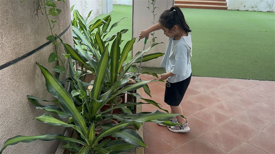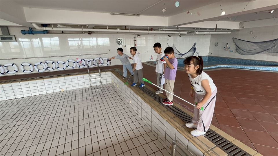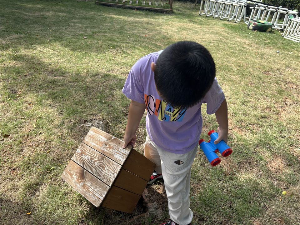 只见孩子们有的蹲在草地里拨开落叶仔细看,有的踮着脚检查木箱子缝隙,他们还一起趴在地上用长杆往器械箱子的缝隙里够,有的用长杆在盆栽里寻找小乌龟的踪迹。还去了戏水池的泳池边寻找,翻开垃圾桶里寻找,打起手电筒每一个角落都不放过,小小的身影里满是认真。