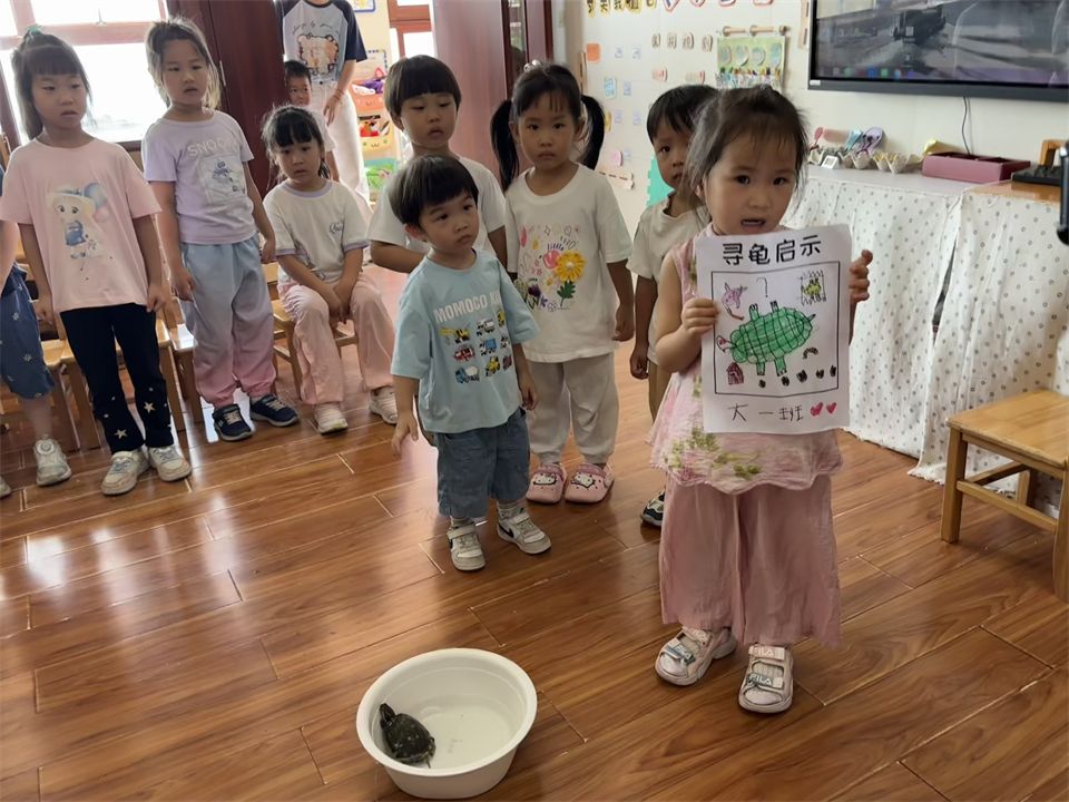 遗憾的是,一轮寻找下来,小乌龟依旧没有消息。但孩子们没有放弃,他们决定制作“寻龟启示”:用彩笔画出小乌龟的样子,写下“大一班”,一张张充满心意的启示,被他们小心翼翼地贴在幼儿园的墙上,盼着能有好消息传来。