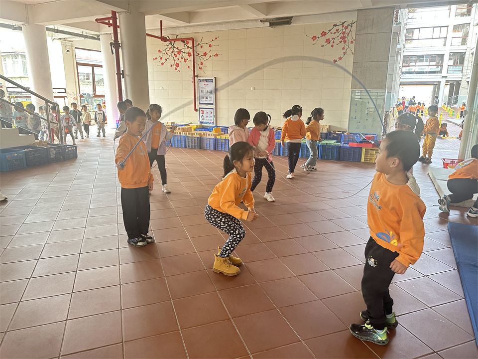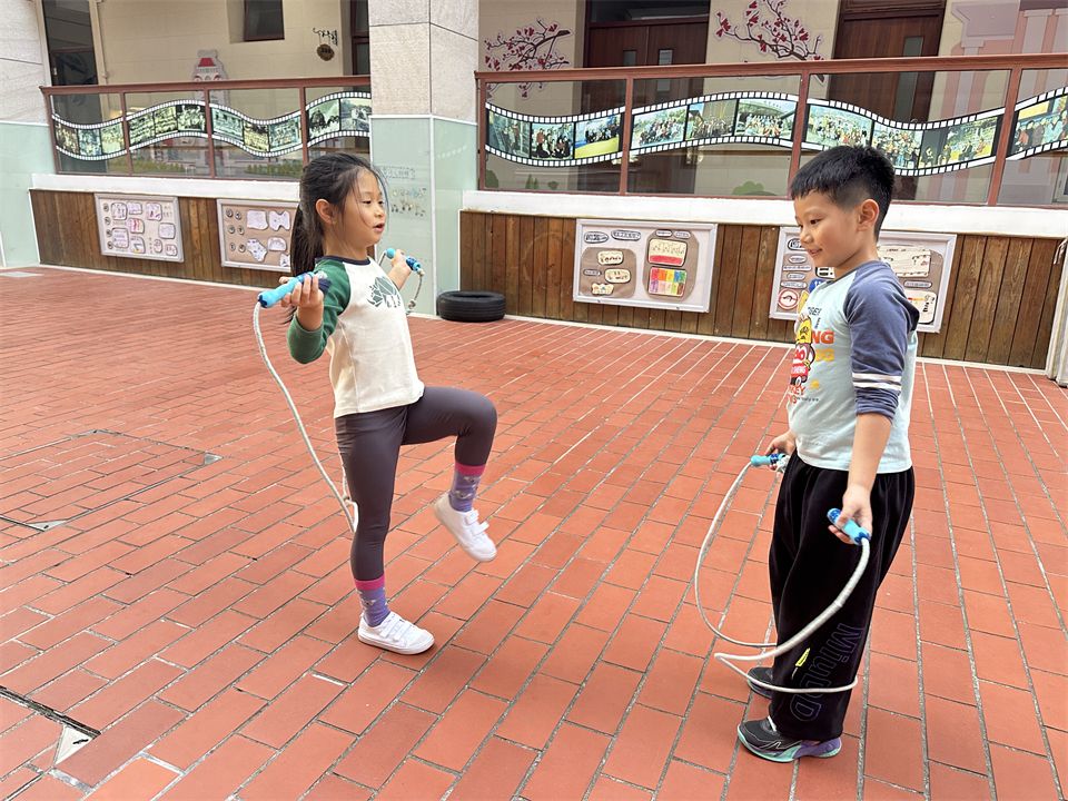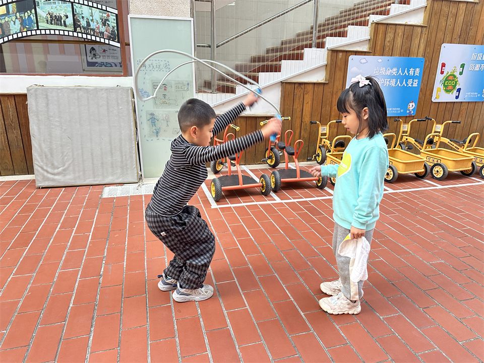 随着孩子们跳绳的技巧逐渐熟练起来,他们探索出多种跳绳方式:跑跳、开合跳、单脚跳等跳绳游戏,快瞧瞧他们探索的更多花样跳绳吧!