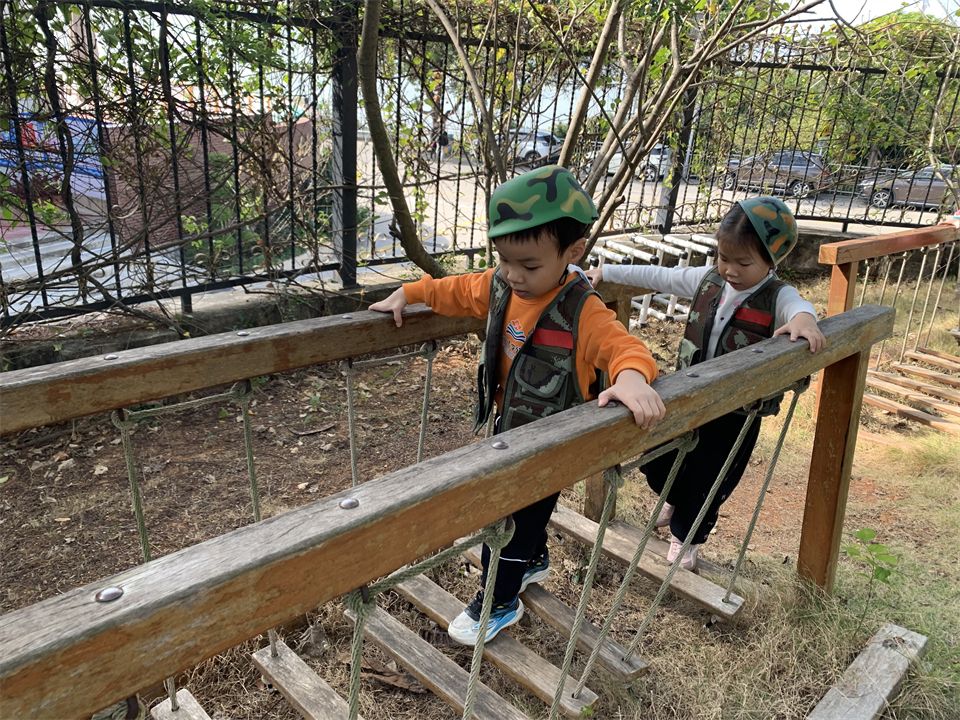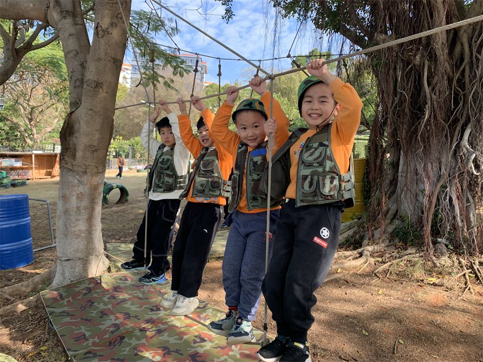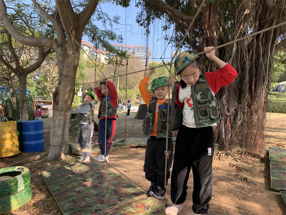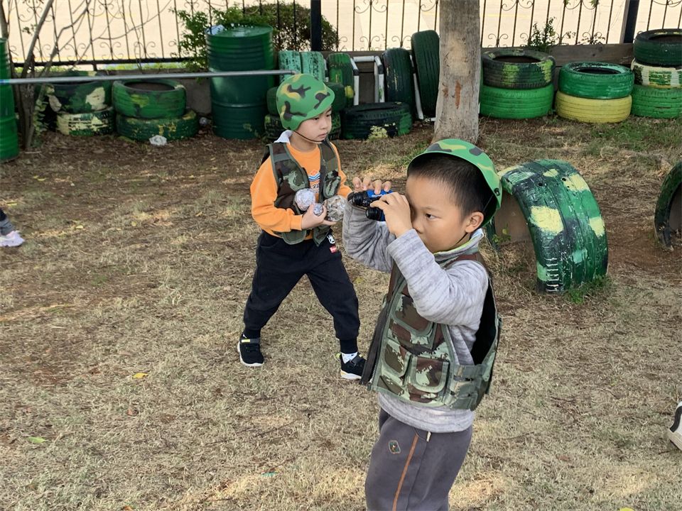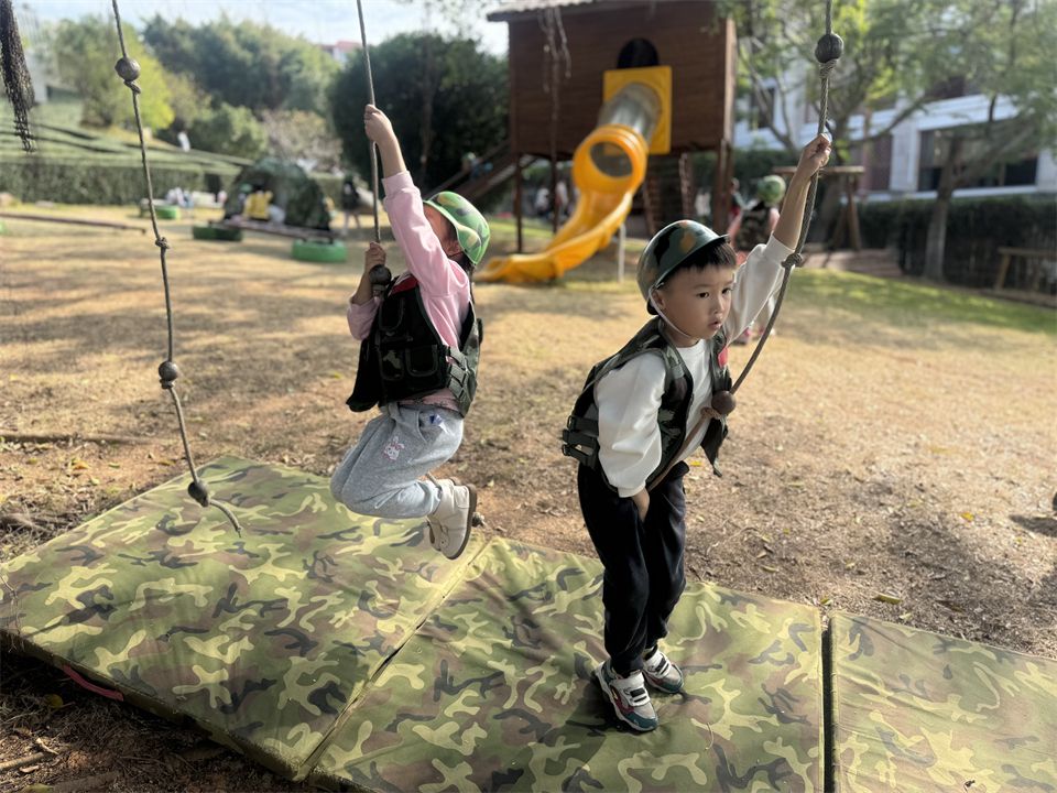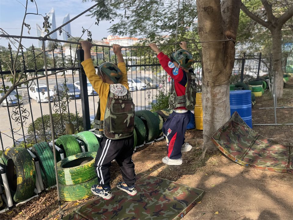 最让人兴奋的,当属山坡户外CS活动!迷彩小背心一穿,萌娃们瞬间变身勇敢的小战士。山坡上的“丛林”里,他们小心翼翼地穿梭、躲藏、瞄准,团队协作的默契在一次次“作战”中悄然升温。奔跑的身影、清脆的笑声,让冬日的山坡变成了欢乐的战场。