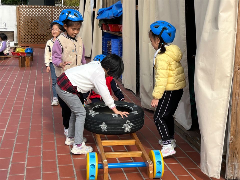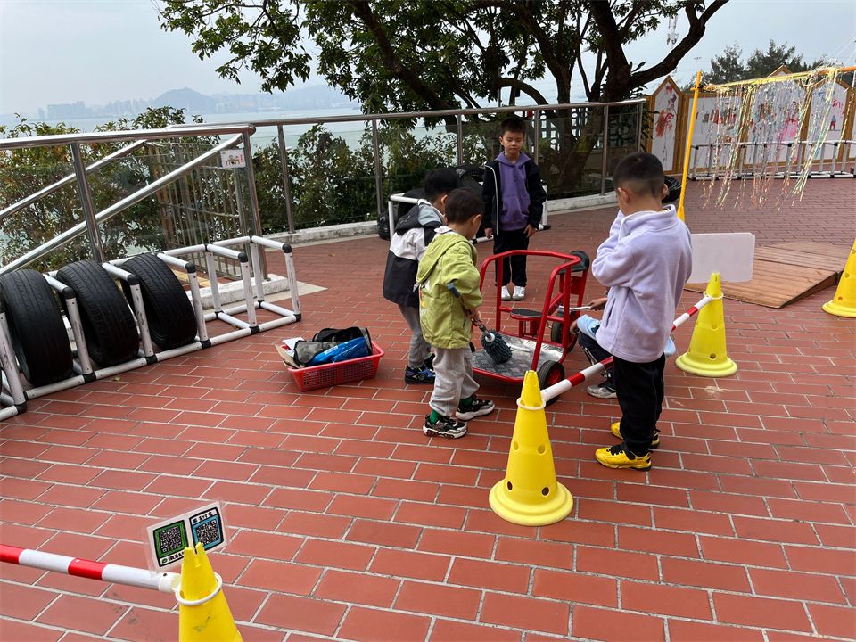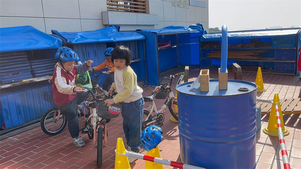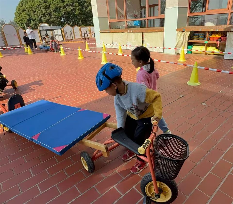 在十二月的阳光下,幼儿园的户外骑行区成为孩子们自由探索、自主创造的乐园。孩子们在骑行区中共同创建了奶茶烧烤店、洗车修车店等丰富的游戏场景,在角色扮演中体验不同职业的快乐,让游戏变得更加生动有趣,充满了“故事感”。