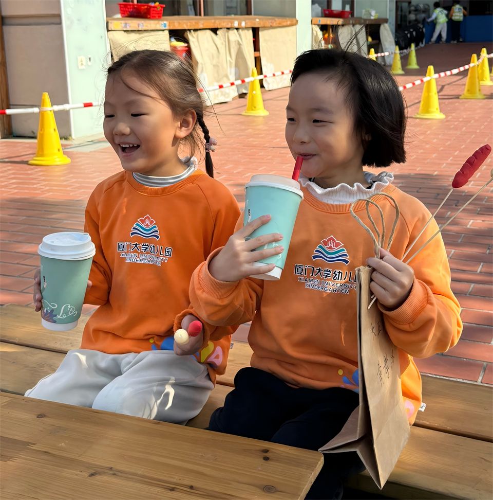 在升旗台前,孩子们搭建起了一家“奶茶烧烤店”。有的孩子扮演老板,忙着“点单”和“制作”,有的孩子当起了顾客,认真地挑选自己喜欢的“口味”,让升旗台变成了充满烟火气的小商店。