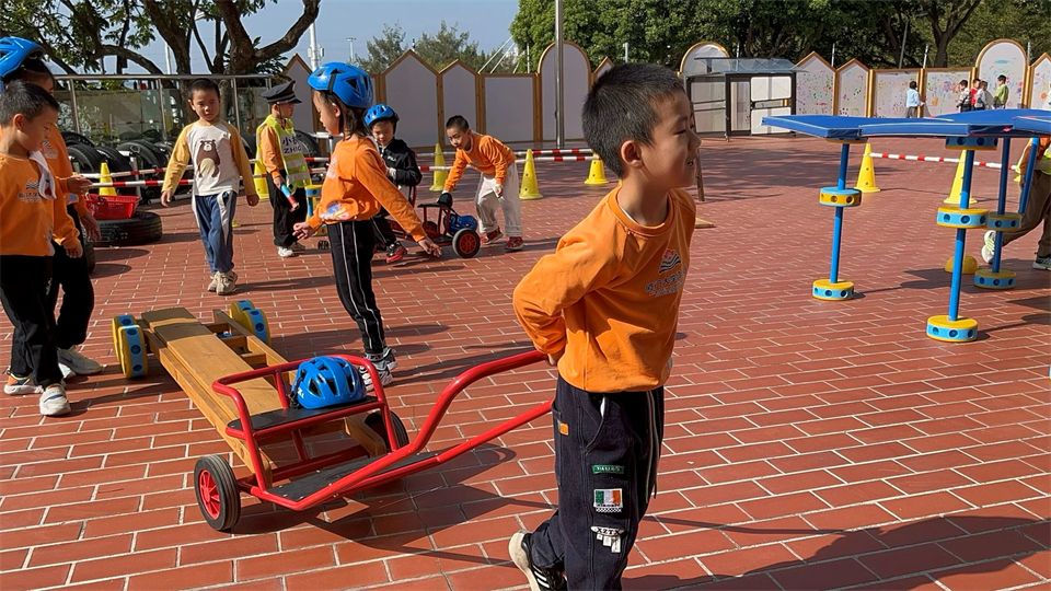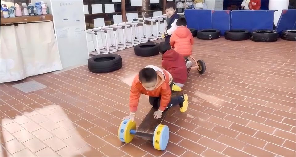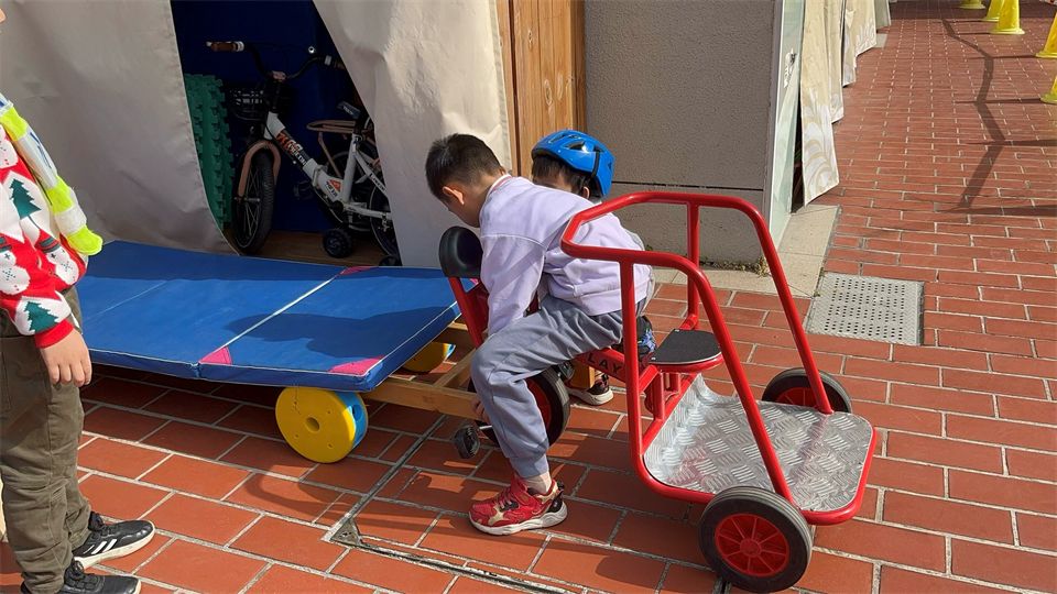 一月的风带着微凉,却挡不住宝贝们探索的热情。暖融融的阳光洒满骑行区,照亮了散落的木板、木梯和各式小车,孩子们欢呼着围在一起,七嘴八舌地讨论着要造一辆 “超级座驾”,一场充满奇思妙想的造车游戏正要热闹开启!