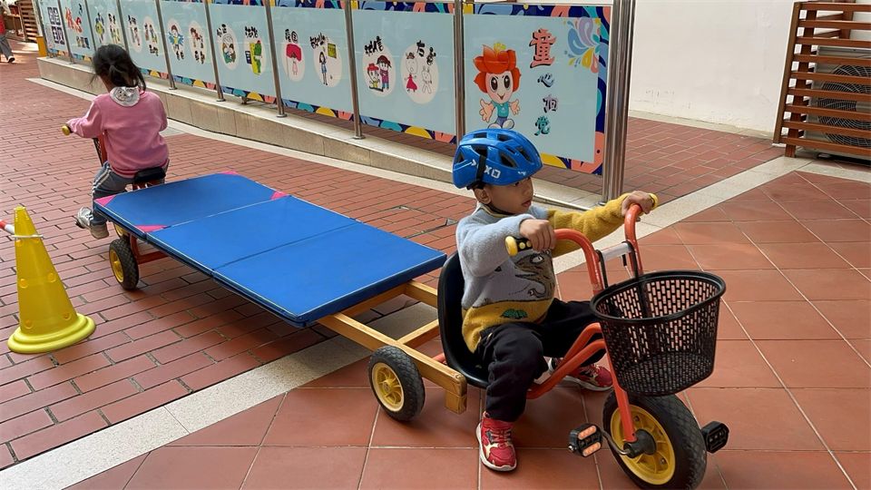 成功解决拐弯难题后,宝贝们的探索欲更足了!一会儿换平衡车当车头,一会儿试试三轮车,每一次更换都满心期待地测试,还会拉着小伙伴分享:“这个车头更好推!”“转弯更灵活啦!”小脸上满是发现新乐趣的惊喜。