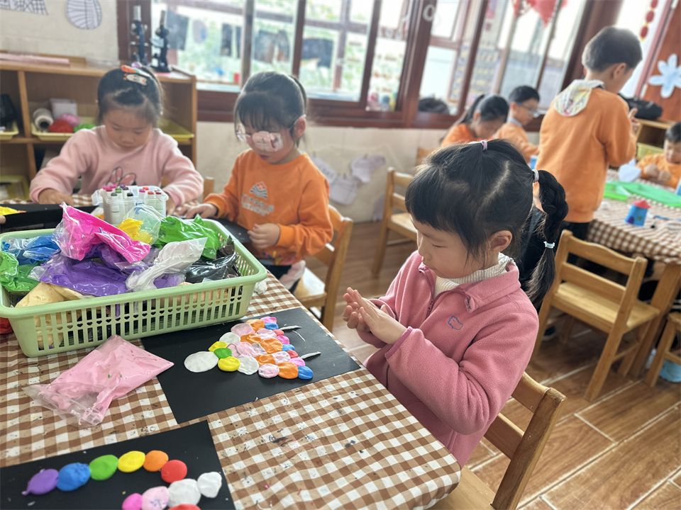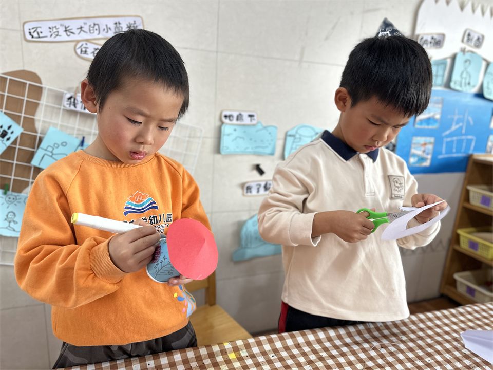 手工课上,彩纸在小手里翻飞,一个个带着笑脸的雪人挂饰、一双双色彩鲜艳的“冬日暖帽”渐渐成型。有的宝贝认真地说:“我要把雪人送给妈妈,让妈妈冬天不冷!”