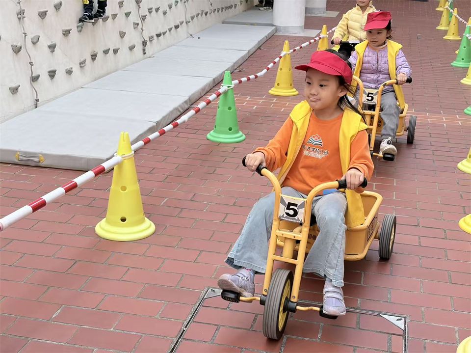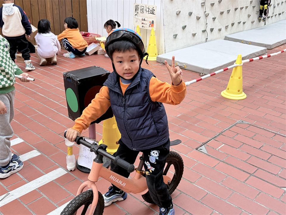 冬日的阳光是最温柔的馈赠,晨间锻炼的时光因此格外惬意。骑行区里,小骑手们裹着鼓鼓的外套,像一个个圆滚滚的小团子,稳稳地握住车把向前骑行。冷风把他们的小脸蛋吹得红扑扑的,却吹不灭眼里的光——有的宝贝自发当起“小裁判”,组织小伙伴进行骑行接力;有的看到同伴骑得慢,便放慢速度并肩前行,还不忘喊一句:“别着急,我们一起走!”清脆的笑声混着车轮滚动的声音,成了冬日里最动听的旋律。