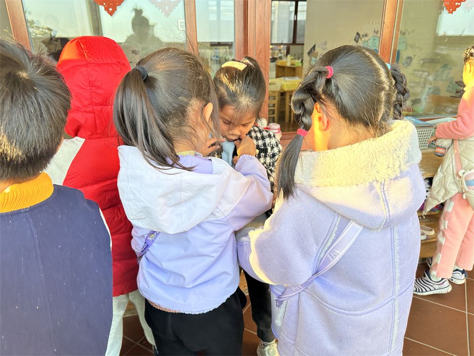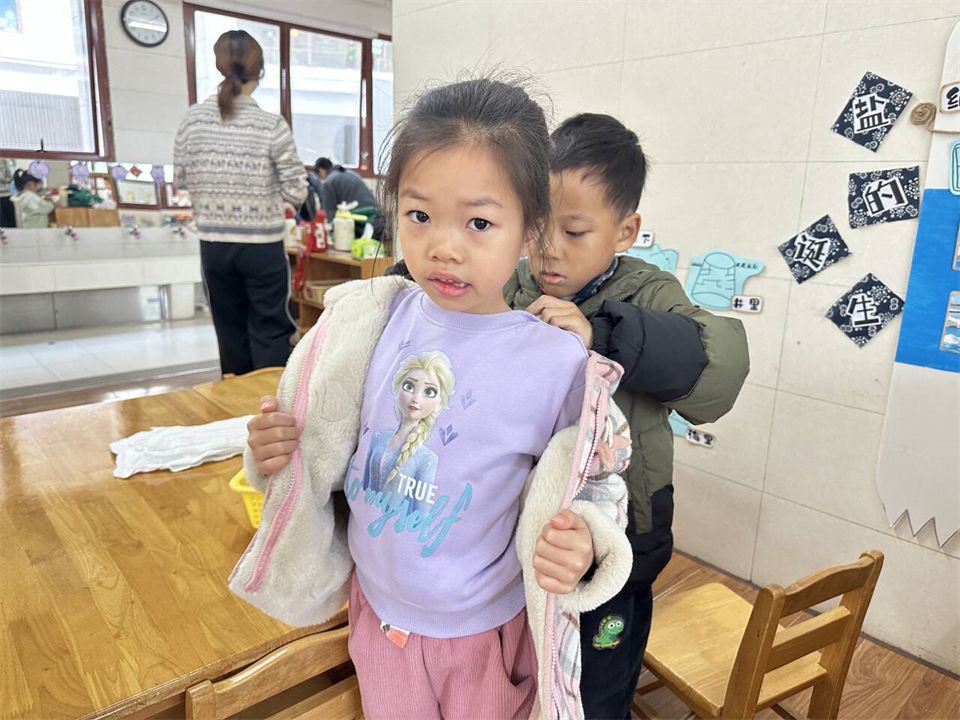 室内的时光,更是暖意融融。午餐后,宝贝们化身“暖心小帮手”,不仅能把自己的外套叠得方方正正,还会主动帮小伙伴整理帽子、围巾。