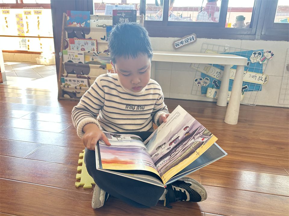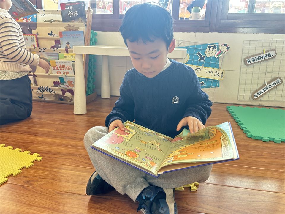 阅读区里,几个小脑袋凑在一起,捧着《冬天来了》的绘本叽叽喳喳讨论,稚嫩的话语里满是对冬天的好奇与喜爱,温暖了整个教室。