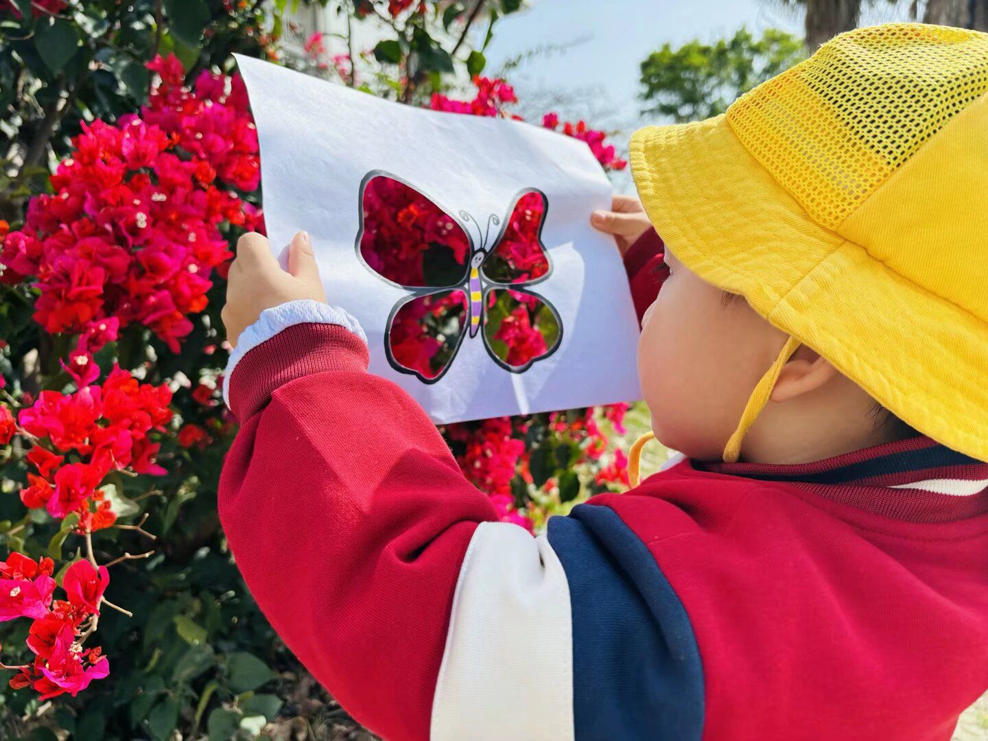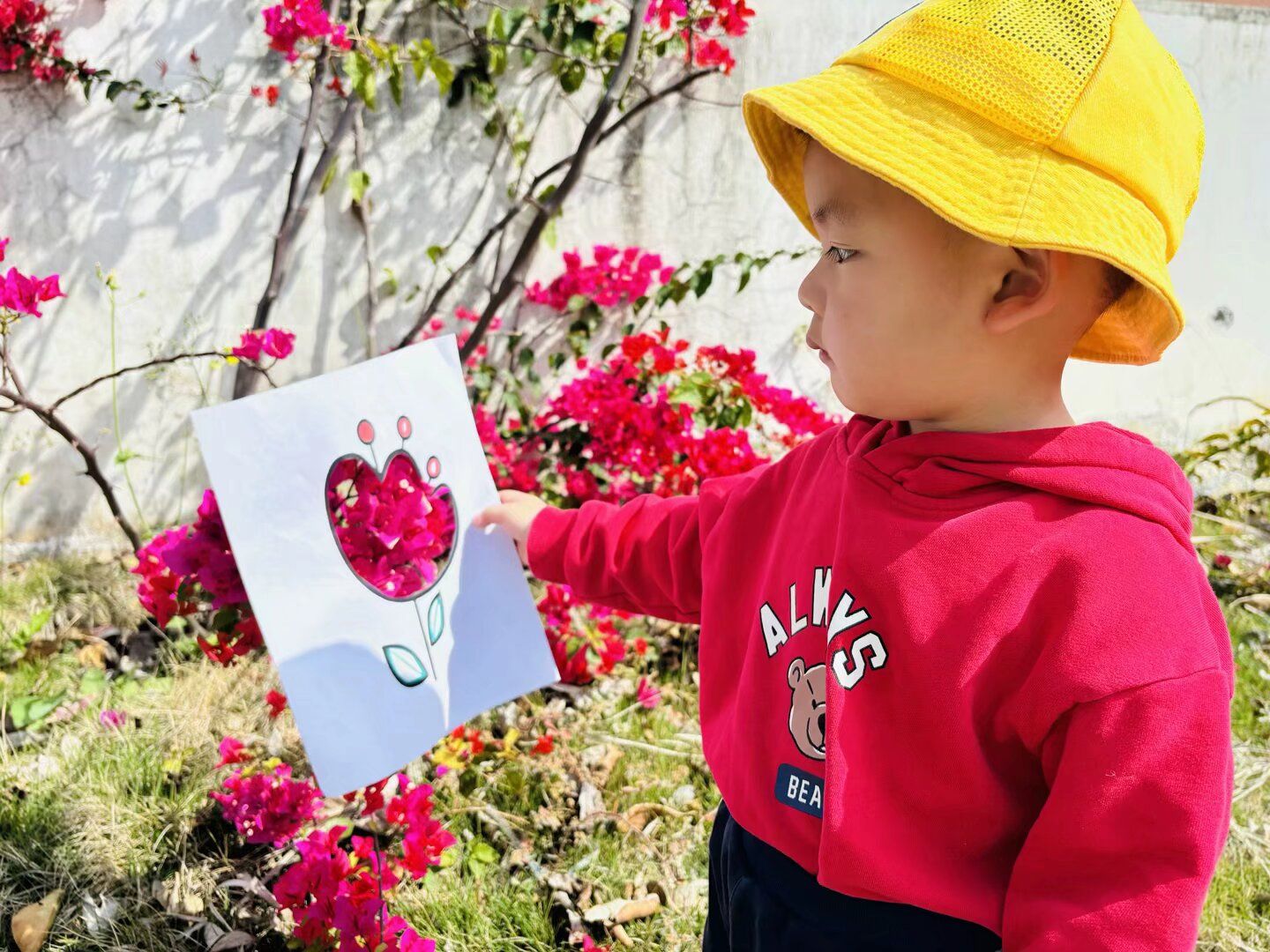 春天里当然少不了寻找春天的小游戏,孩子们分组收集春天的印记——一片新绿的树叶、一朵绽放的小花、一根嫩绿的草茎。