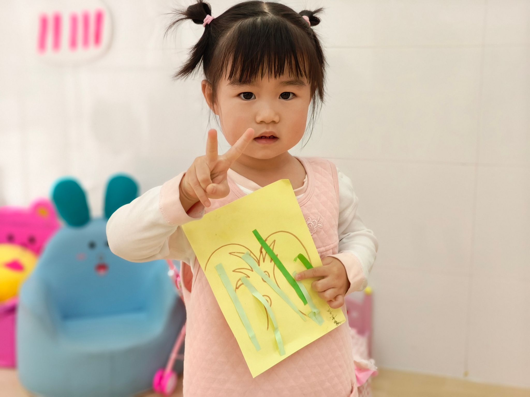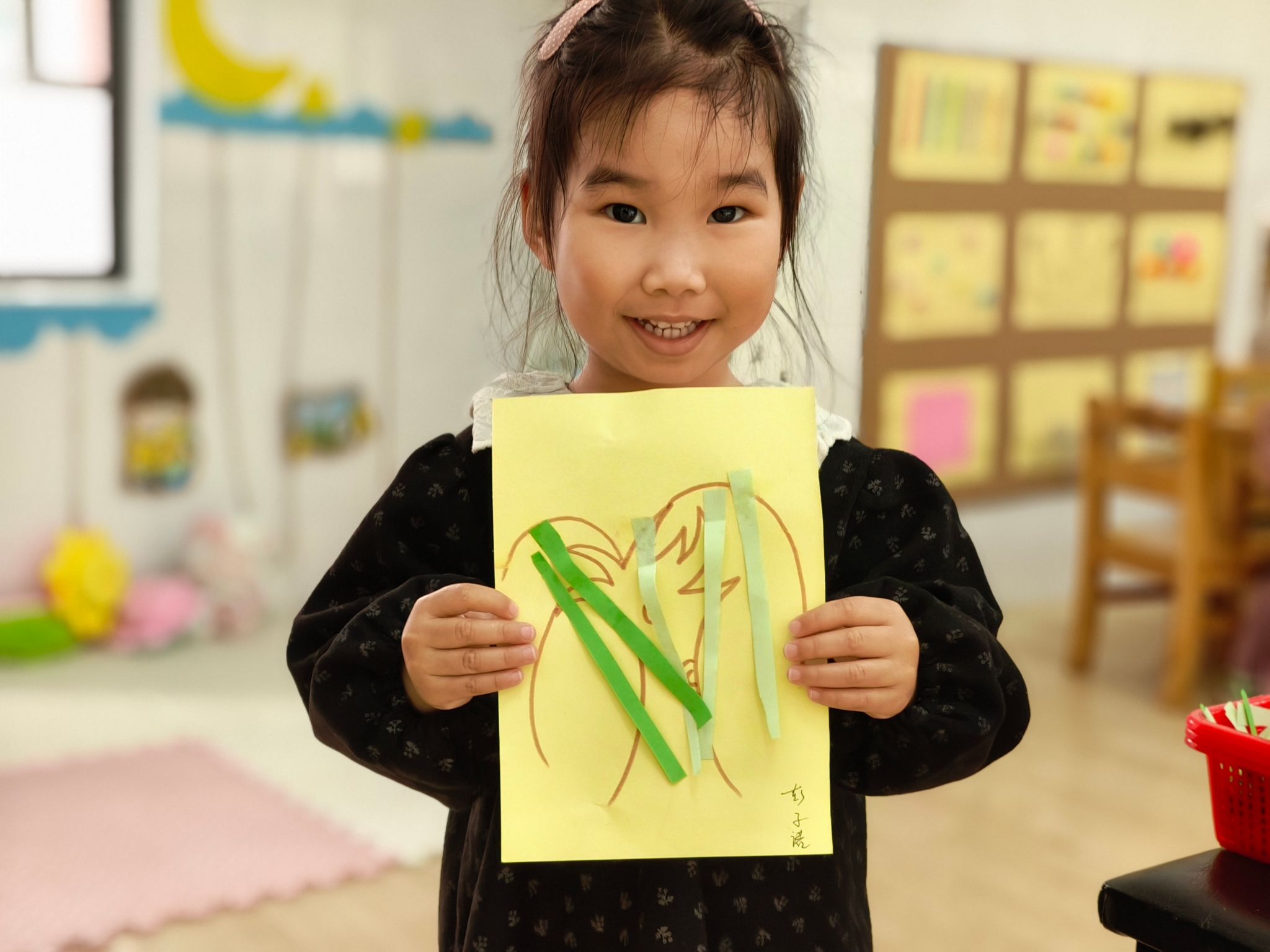 瞧 我们制作的杨柳树儿枝条迎风飘扬,似乎在诉说着春天万物复苏的喜悦。