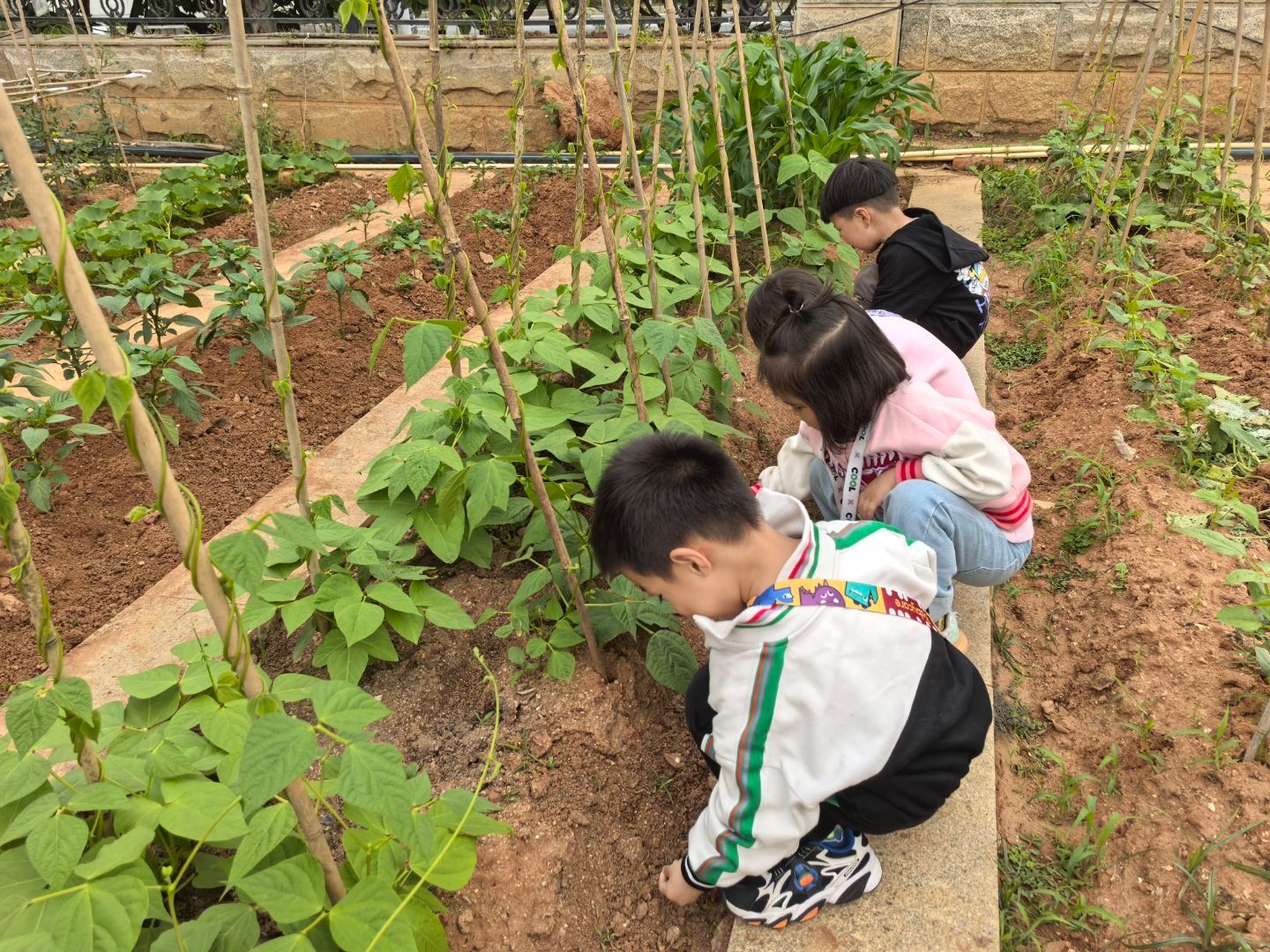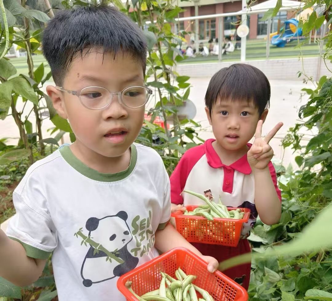 我们会时不时的去看望豆角,也会给它们浇水、施肥。当然也盼望着豆角早点开花、结果。盼望着盼望着,豆角真的成熟了,我们开心极了,拿上小筐子去摘豆角。虽然第一次成熟的豆角不多,但是我们还是好开心哦!因为这是我们亲手种植的豆角。