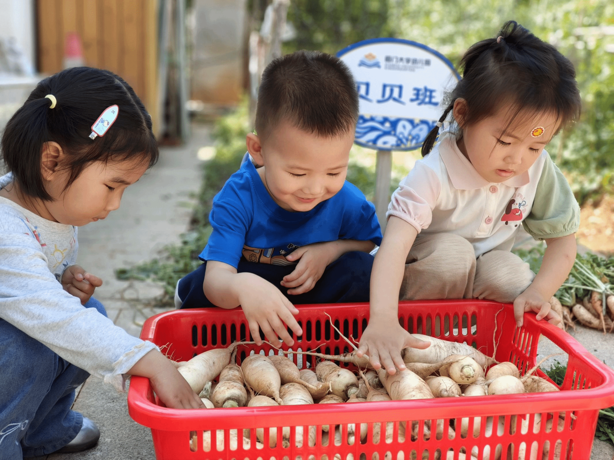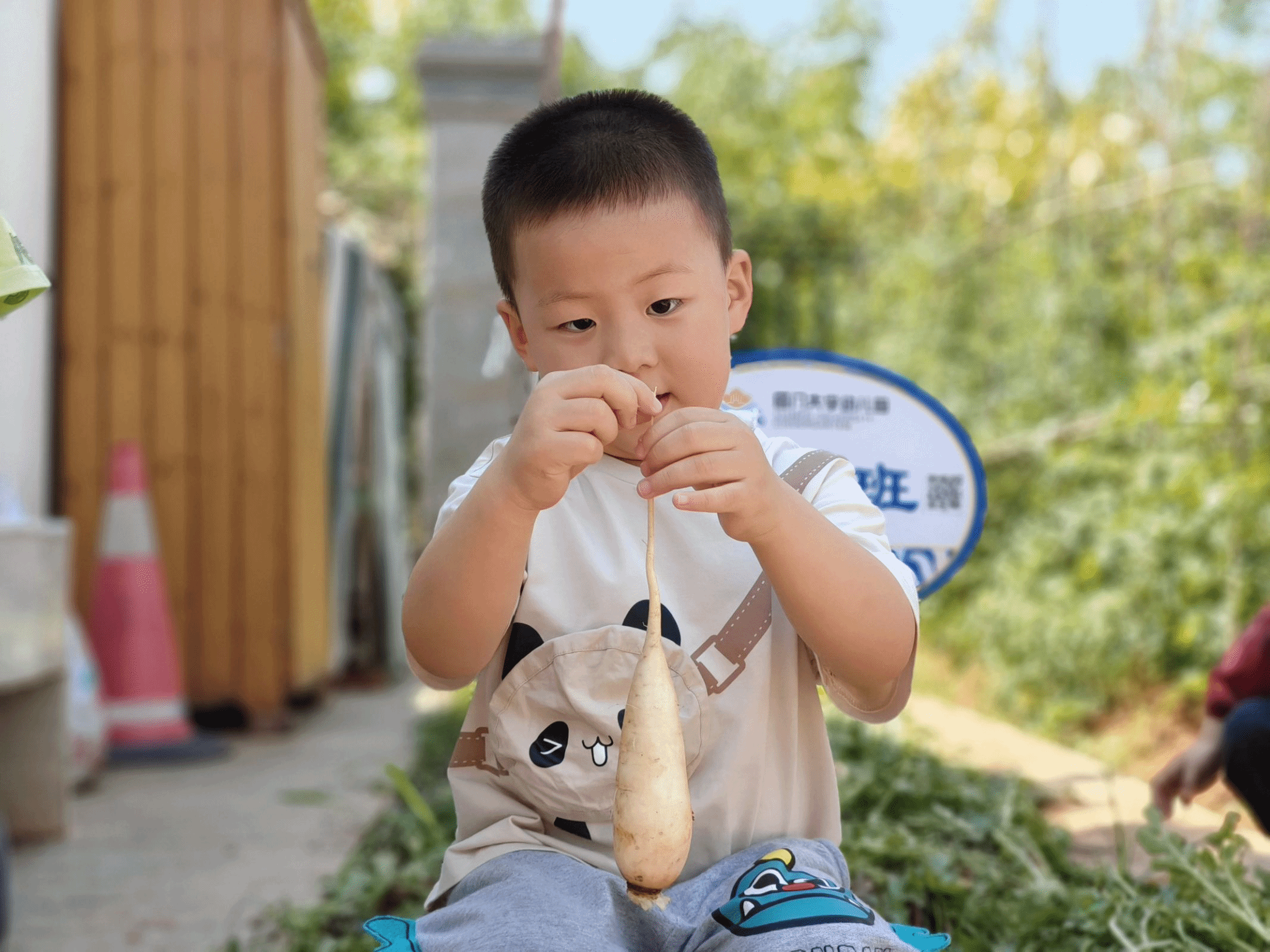 从播种到收获,每一步都充满爱与耐心,从开学初一起细心地为这些小生命浇水,施肥,观察叶子的生长变化,终于,萝卜丰收啦!孩子们亲手体验了拔萝卜,大手拉着小手,一起感受泥土松动的神奇触感,看着萝卜慢慢破土而出。这样的丰收时刻,既充满欢乐,又承载着深刻的意义,让孩子们的成长与自然融为一体,这样的丰收时刻,既充满欢乐,又承载着深刻的意义,让孩子们的成长与自然融为一体,从种植到实验,每一个活动都是为了让孩子们亲身感受世界的美好与奥妙。