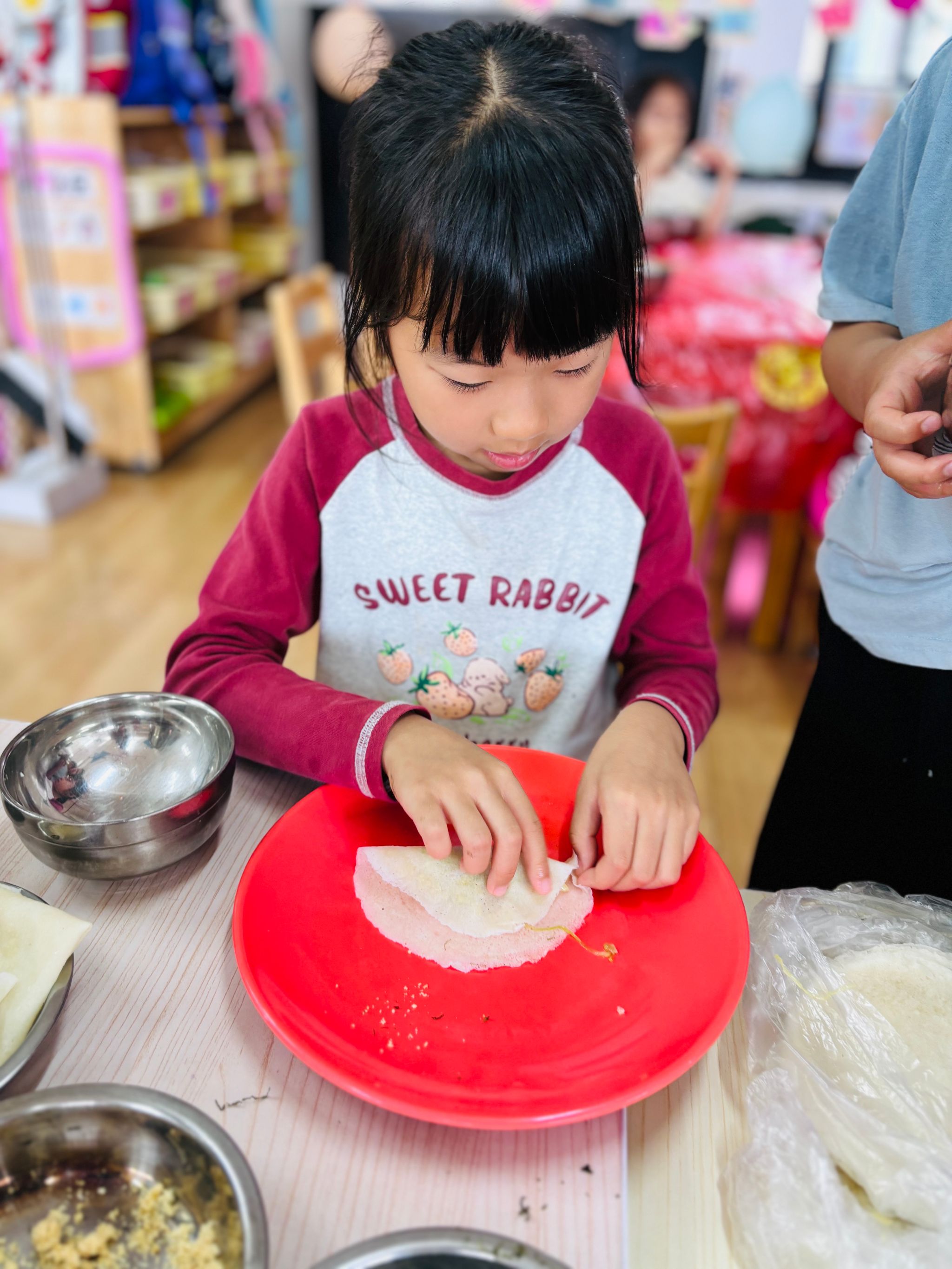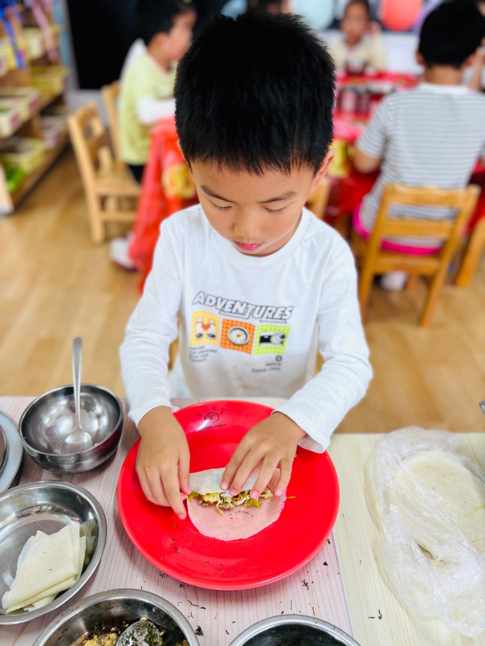 自助餐互动宛如一场舌尖上的奇妙之旅。精心布置的餐台上,色彩缤纷的美食宛如童话里的珍宝,孩子们手持餐盘,化身优雅的“小主人”,专注地挑选心仪的美食,在有序取餐、快乐分享中,独立与礼仪的种子悄然生根发芽。