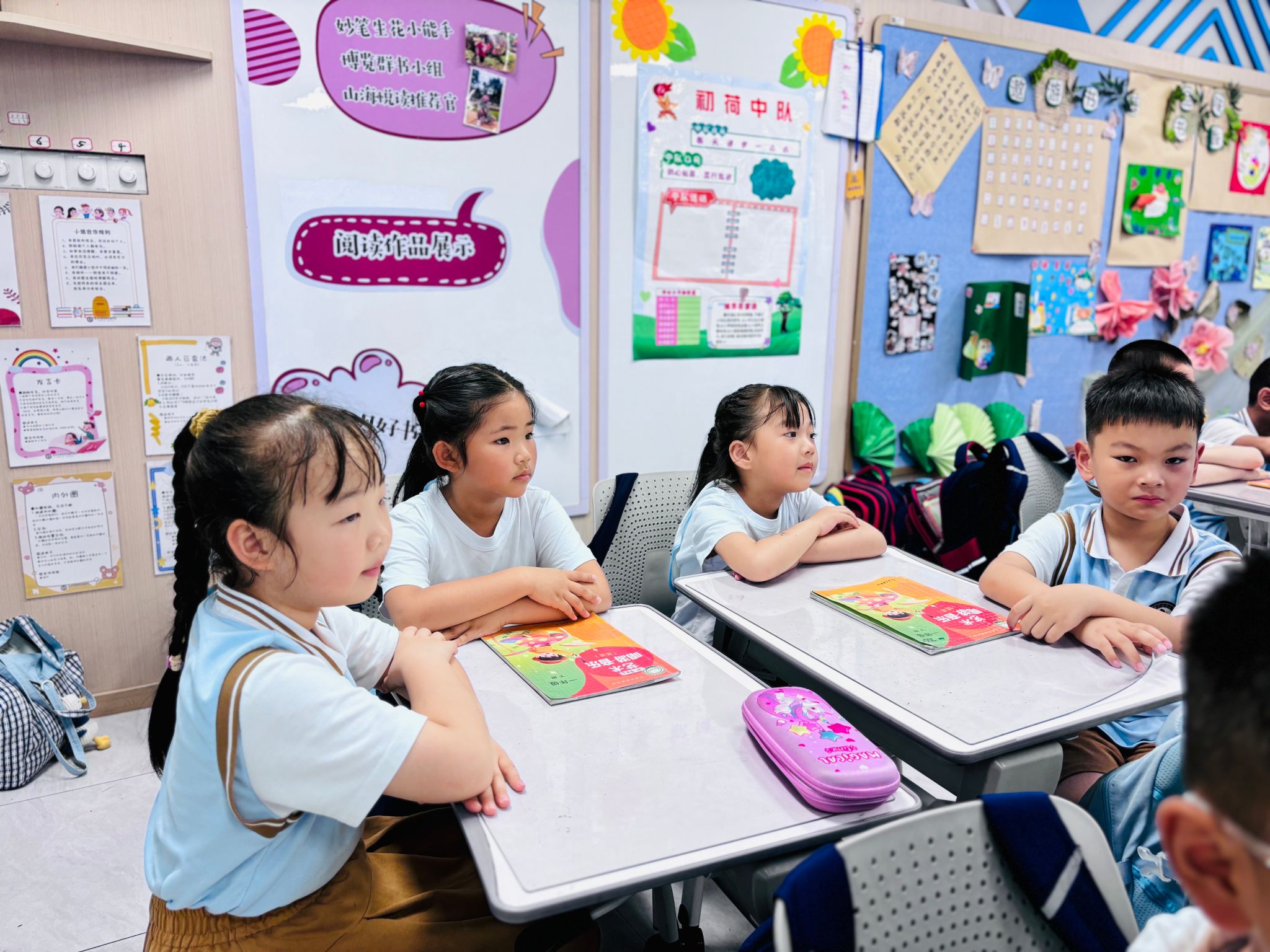 带着对未来的无限憧憬,孩子们踏上了参观小学的旅程。漫步在小学的校园里,阳光透过高大的梧桐树,洒下斑驳的光影。明亮的教室、整齐的课桌椅、丰富多彩的文化墙,各种各样的功能室,都让孩子们的眼中闪烁着好奇的光芒。走进一年级课堂,他们模仿着哥哥姐姐端正坐姿,认真聆听老师讲课,清脆的读书声仿佛在诉说着对知识的渴望;课间10分钟,和哥哥姐姐一起体验合作的快乐。