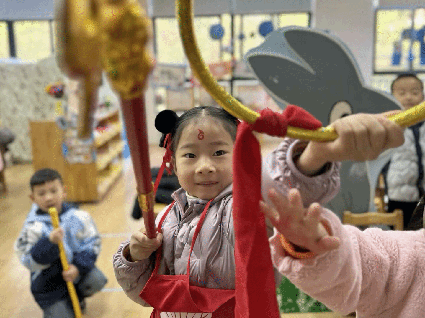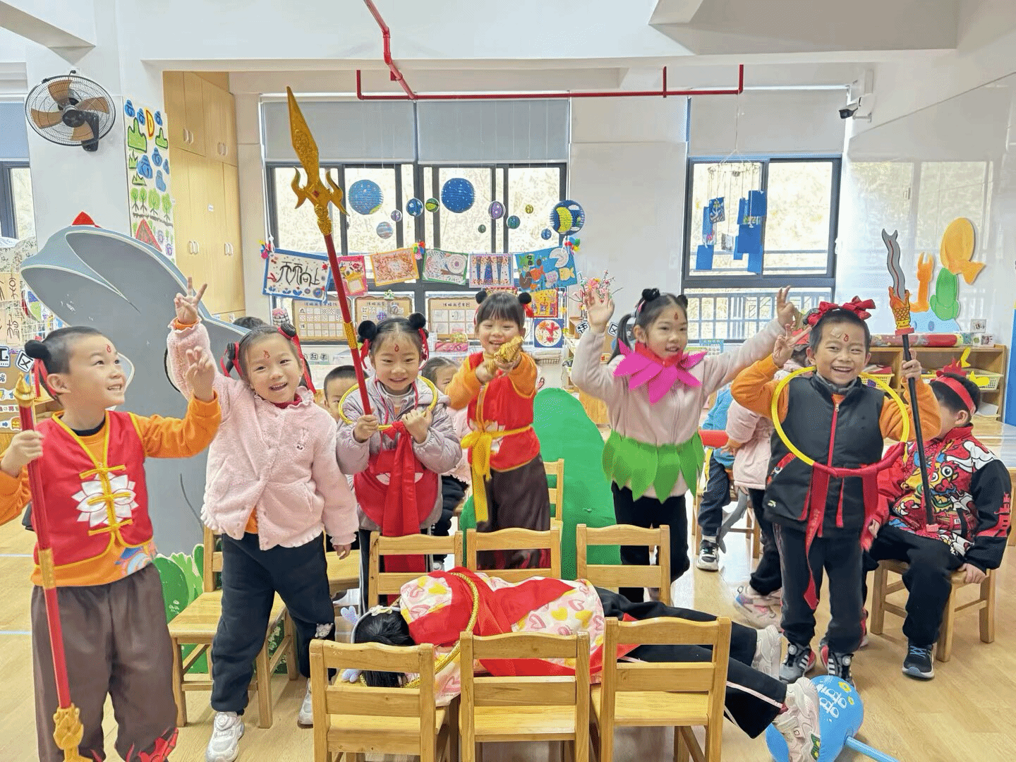 在孩子们充满奇思妙想的世界里,经典的神话故事和动画形象总能激发他们无限的创造力与表演热情。为了让孩子们更好地感受传统文化的魅力,发挥他们的想象力和表现力,我们大班开展了《哪吒闹海》和《葫芦兄弟》的表演游戏。