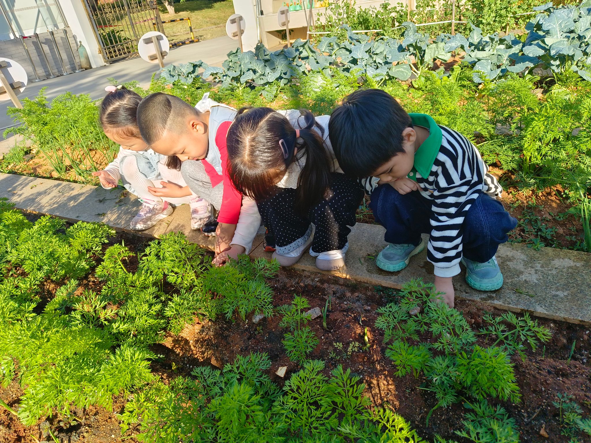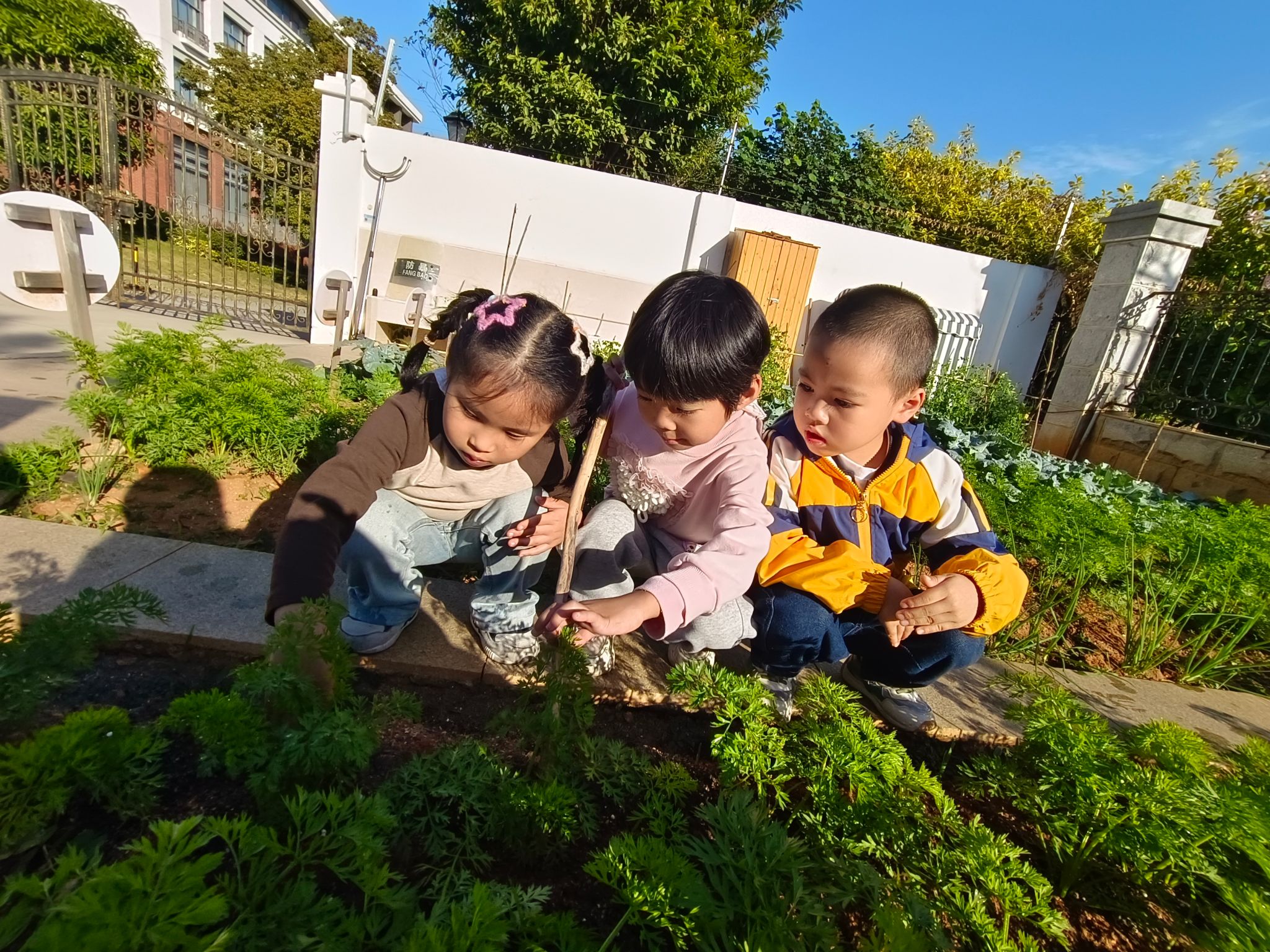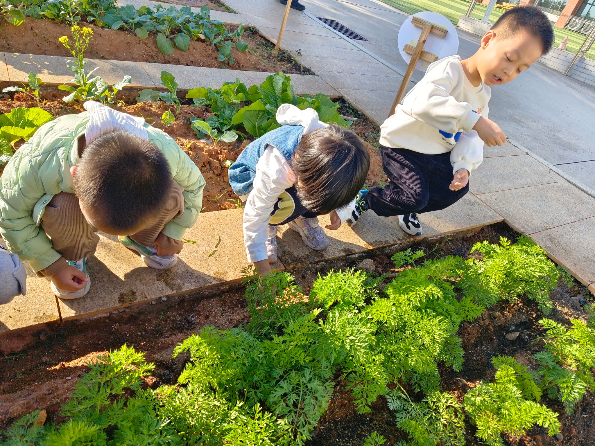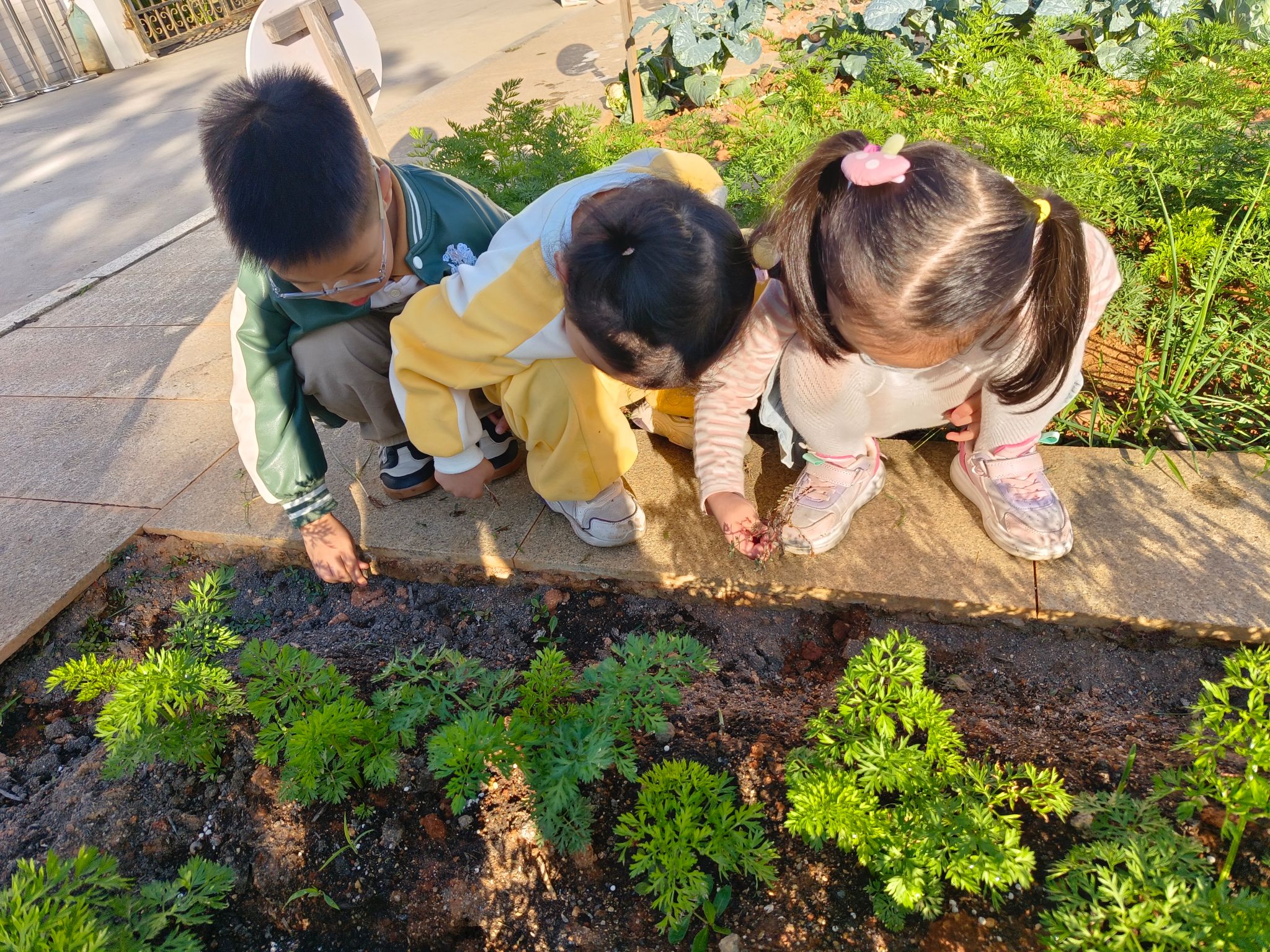 随后,在彭老师的带领下,小朋友们来到了我们中九班的菜地,松土、施肥、、种胡萝卜......大家忙得不亦乐乎,菜地里充满了小朋友们稚嫩的笑声。