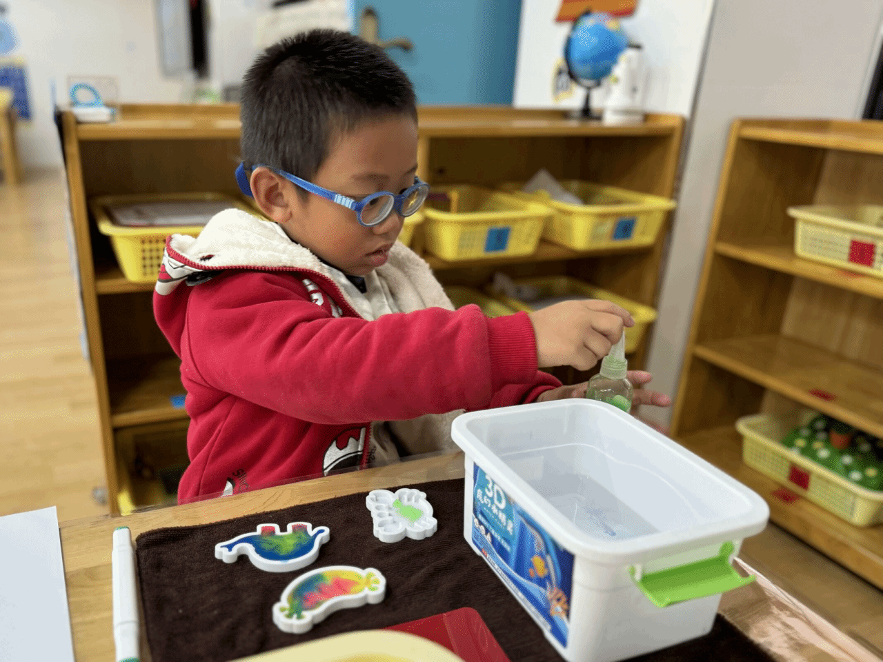 科学区内,孩子们正兴致勃勃地进行着各种有趣的实验。他们观察着水的变化,探索着磁铁的奥秘,好奇心得到了极大的满足。