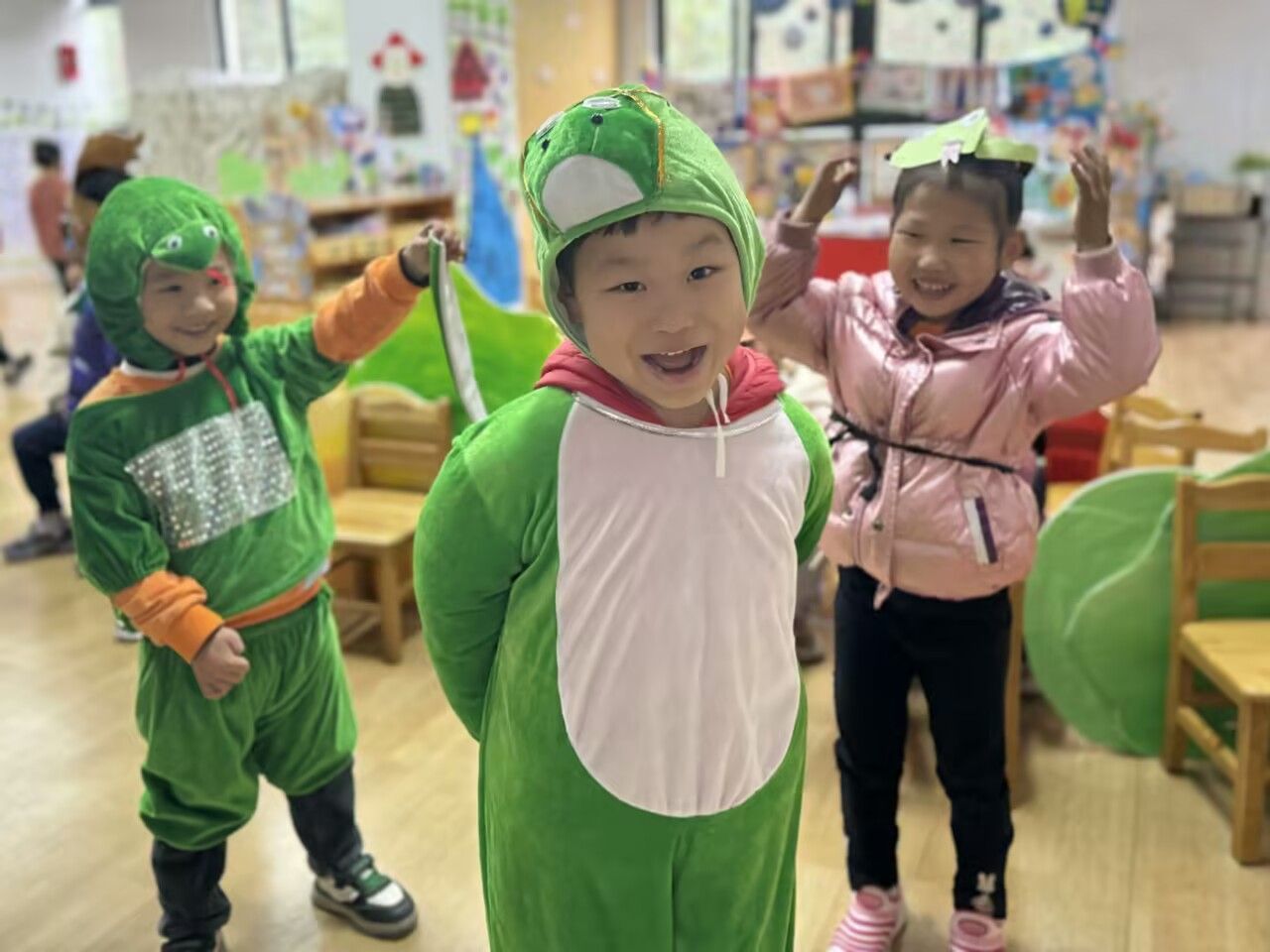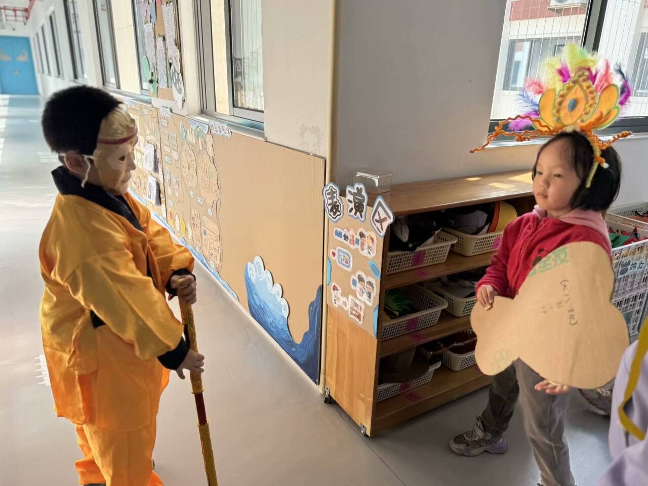 表演区内热闹非凡,孩子们身着各种角色的服装,正在进行一场精彩的表演。通过角色扮演,孩子们学会了换位思考,提升了社交能力。