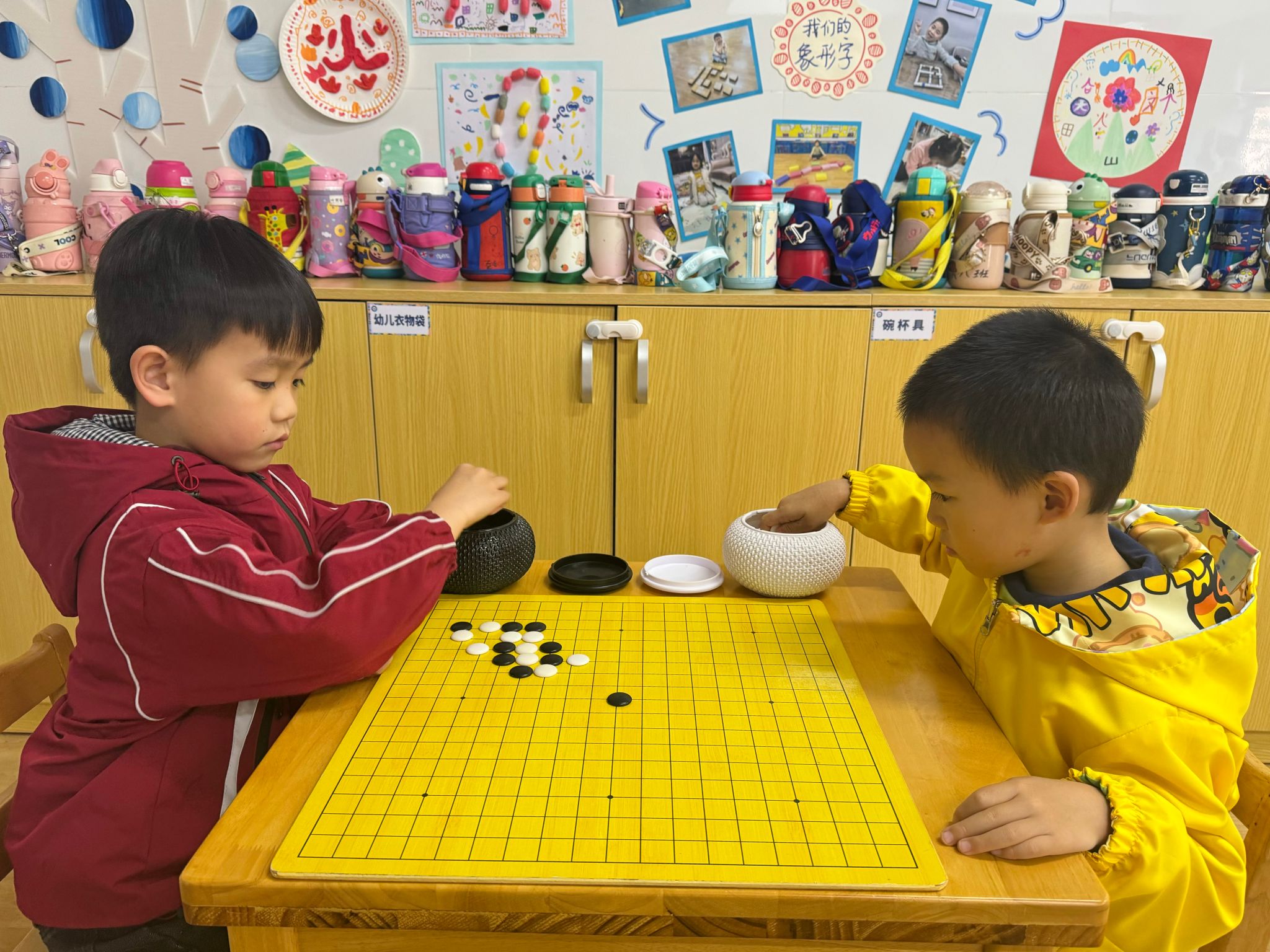 棋艺区,一个集合智力、脑力的区域。既有大家熟知的象棋、围棋、飞行棋……还有老师、孩子共同设计的自制棋。让我们一起去看看棋艺区中孩子们的十八般棋艺吧!