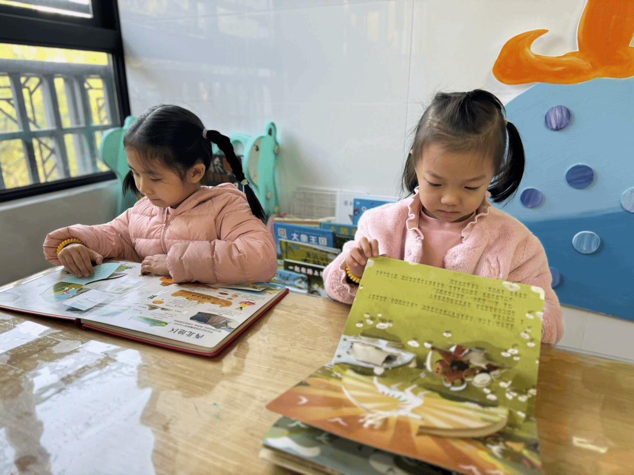 语言区的氛围宁静而温馨,孩子们在书的海洋中遨游。他们翻阅着绘本,聆听着老师讲述的故事,时而安静思考,时而发出欢快的笑声。书籍为孩子们打开了通往知识的大门。