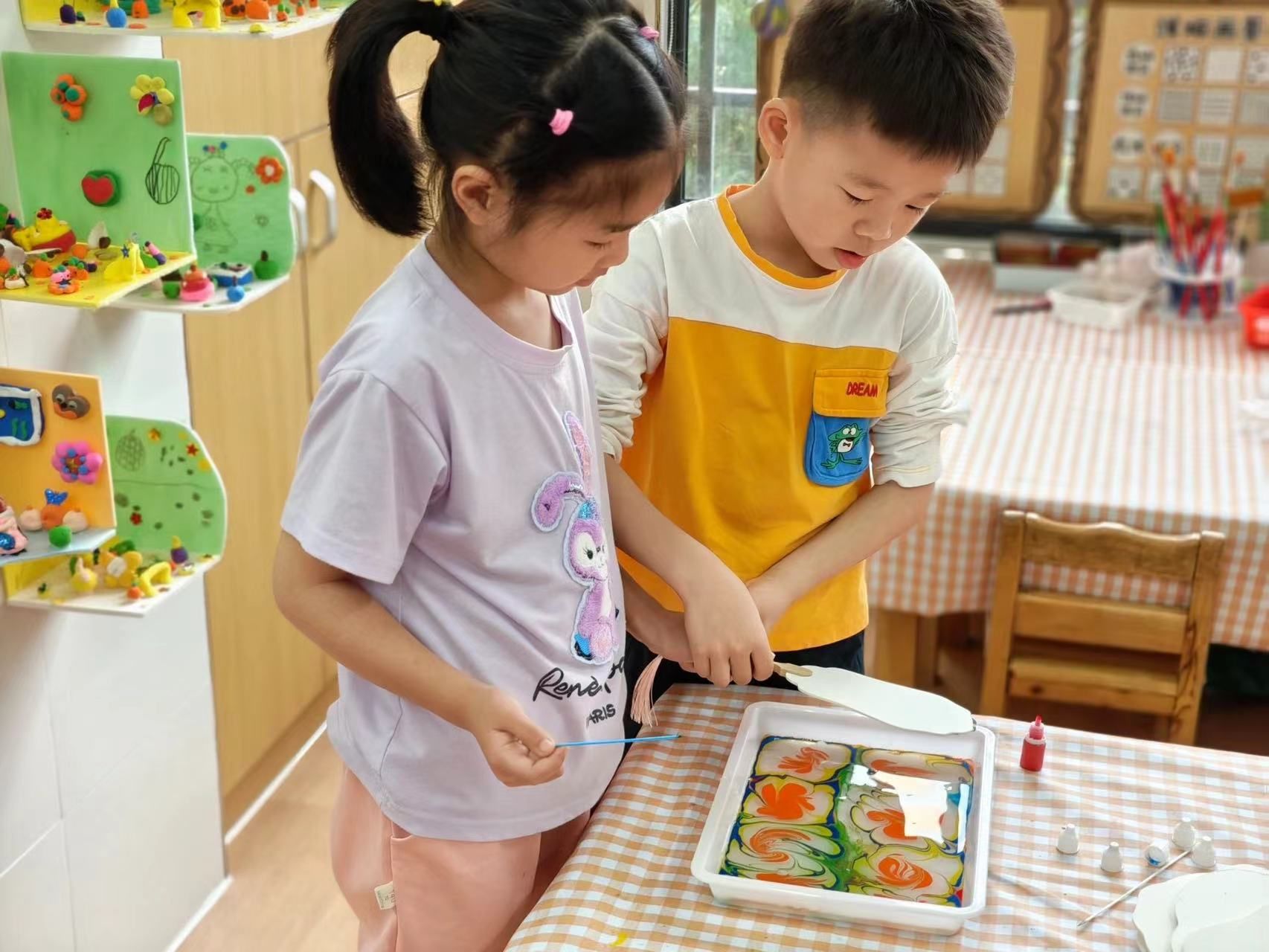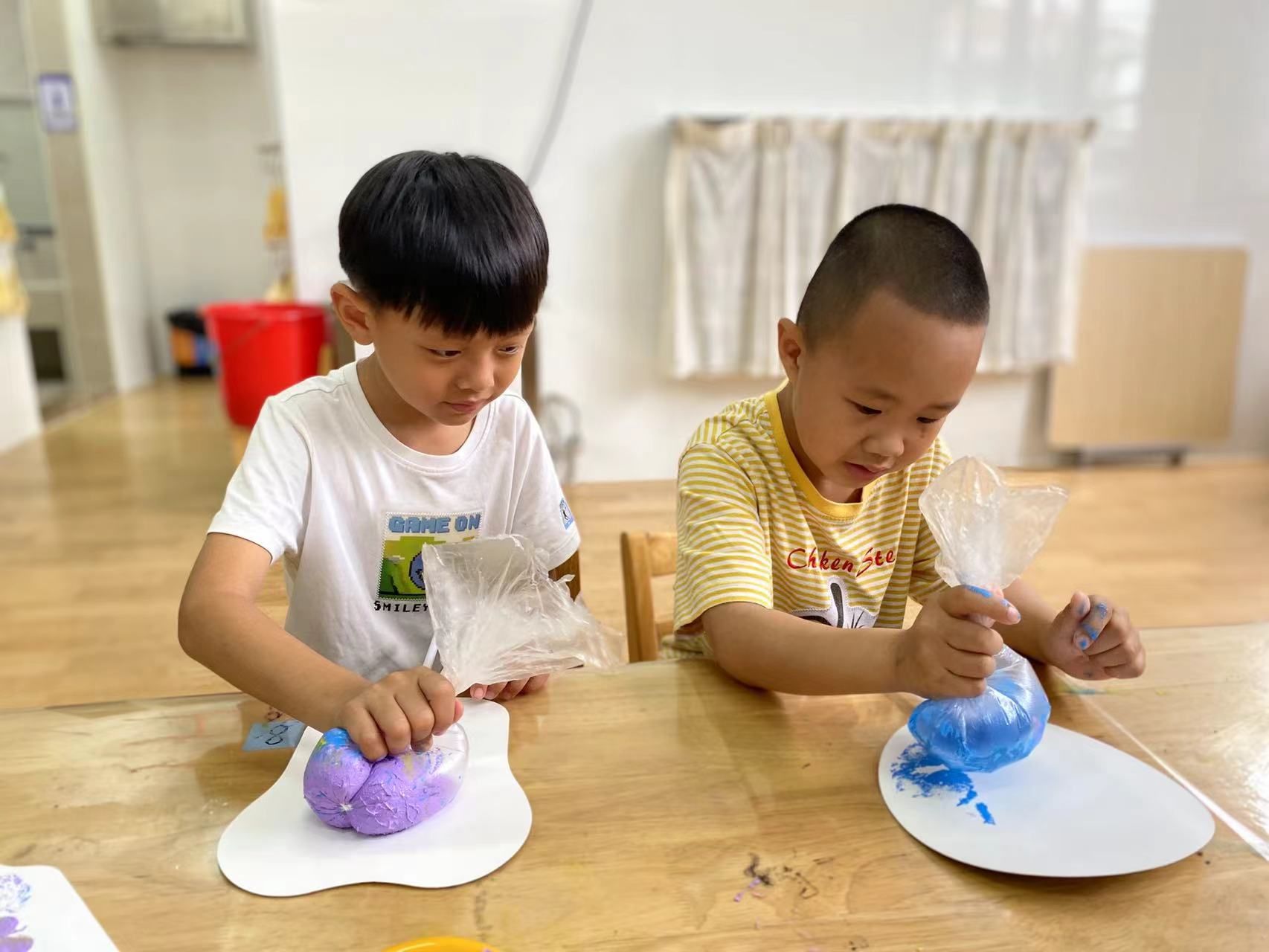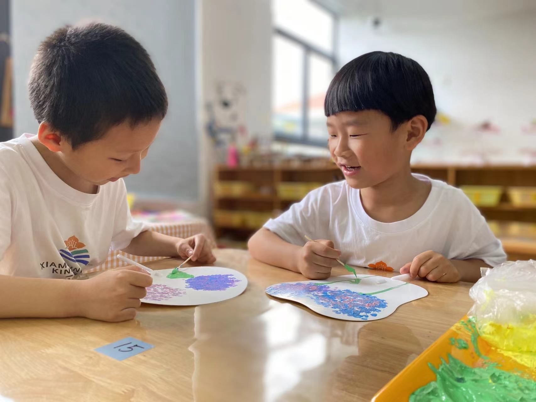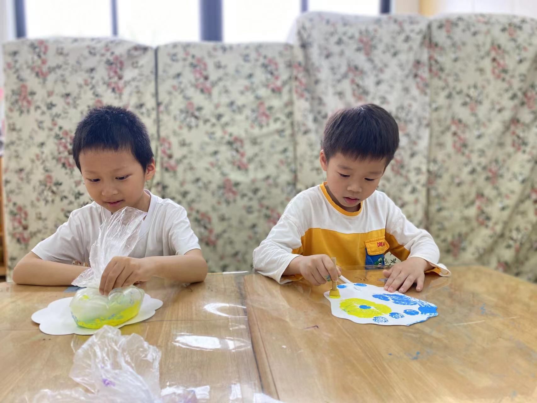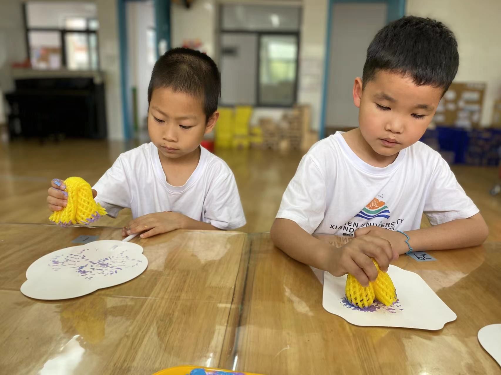 孩子们火力全开正在为跳蚤市场做准备,期待跳蚤市场的到来。涂鸦、拓印、水拓,孩子们使出自己的秘密绝招,一朵朵花已然开满扇面。