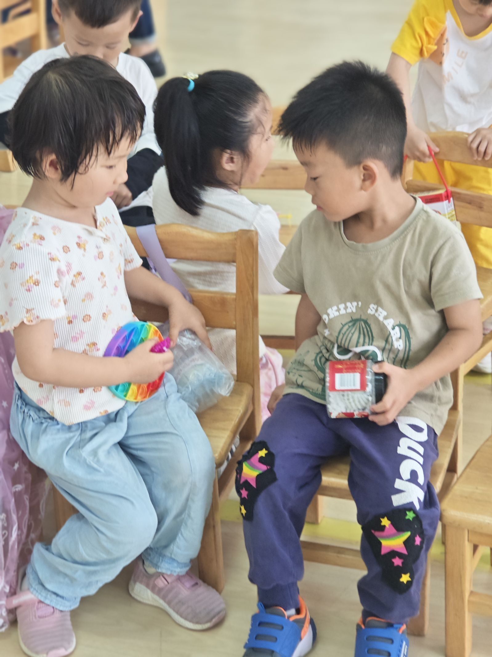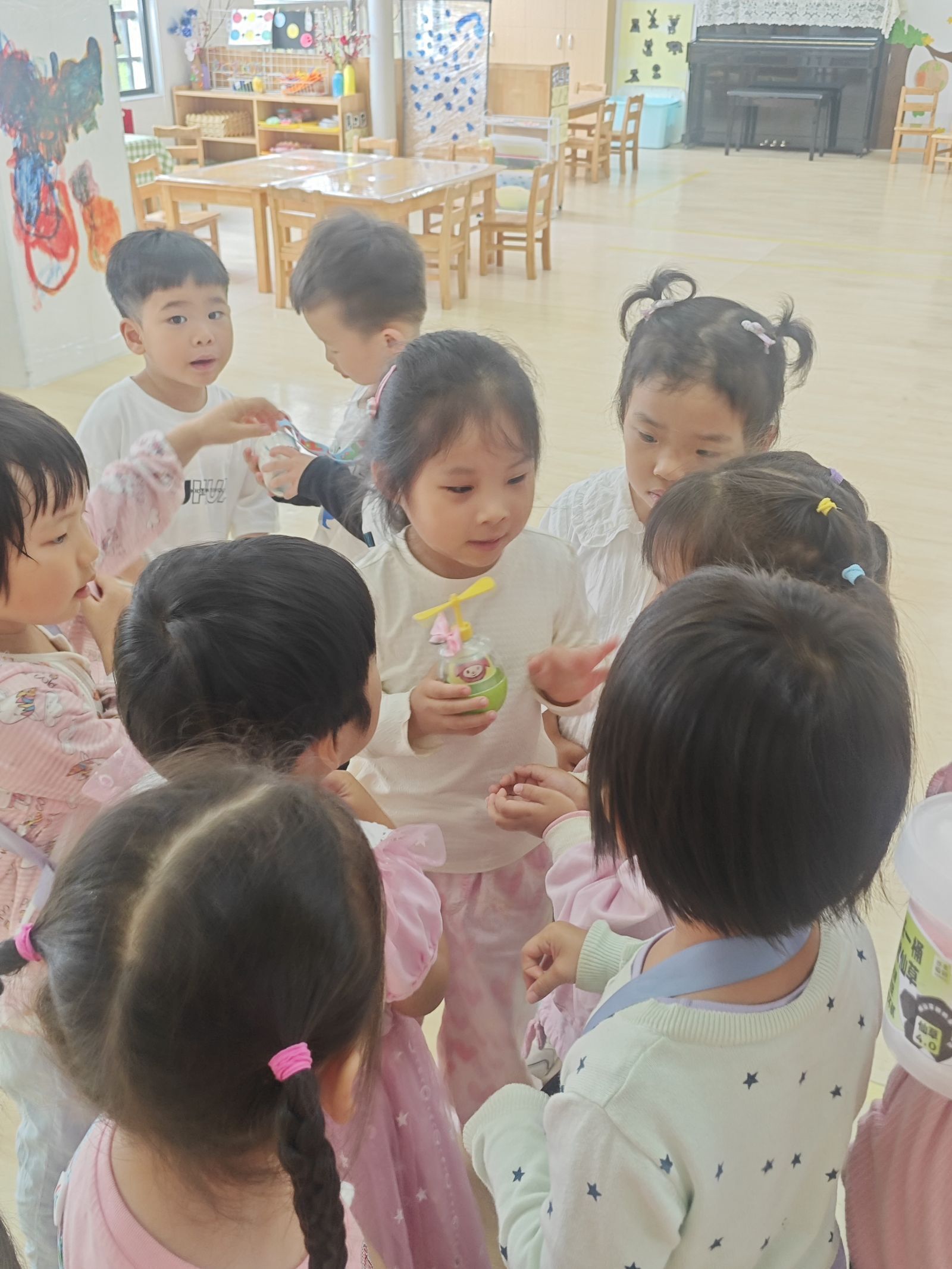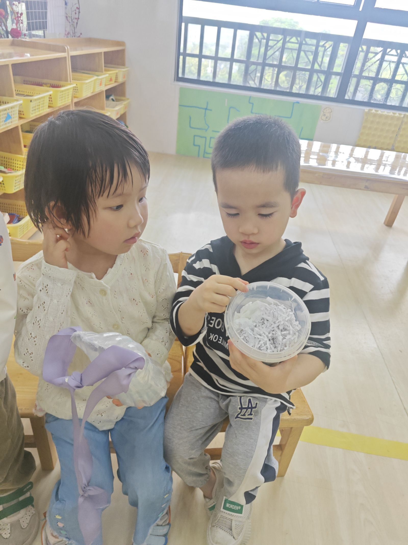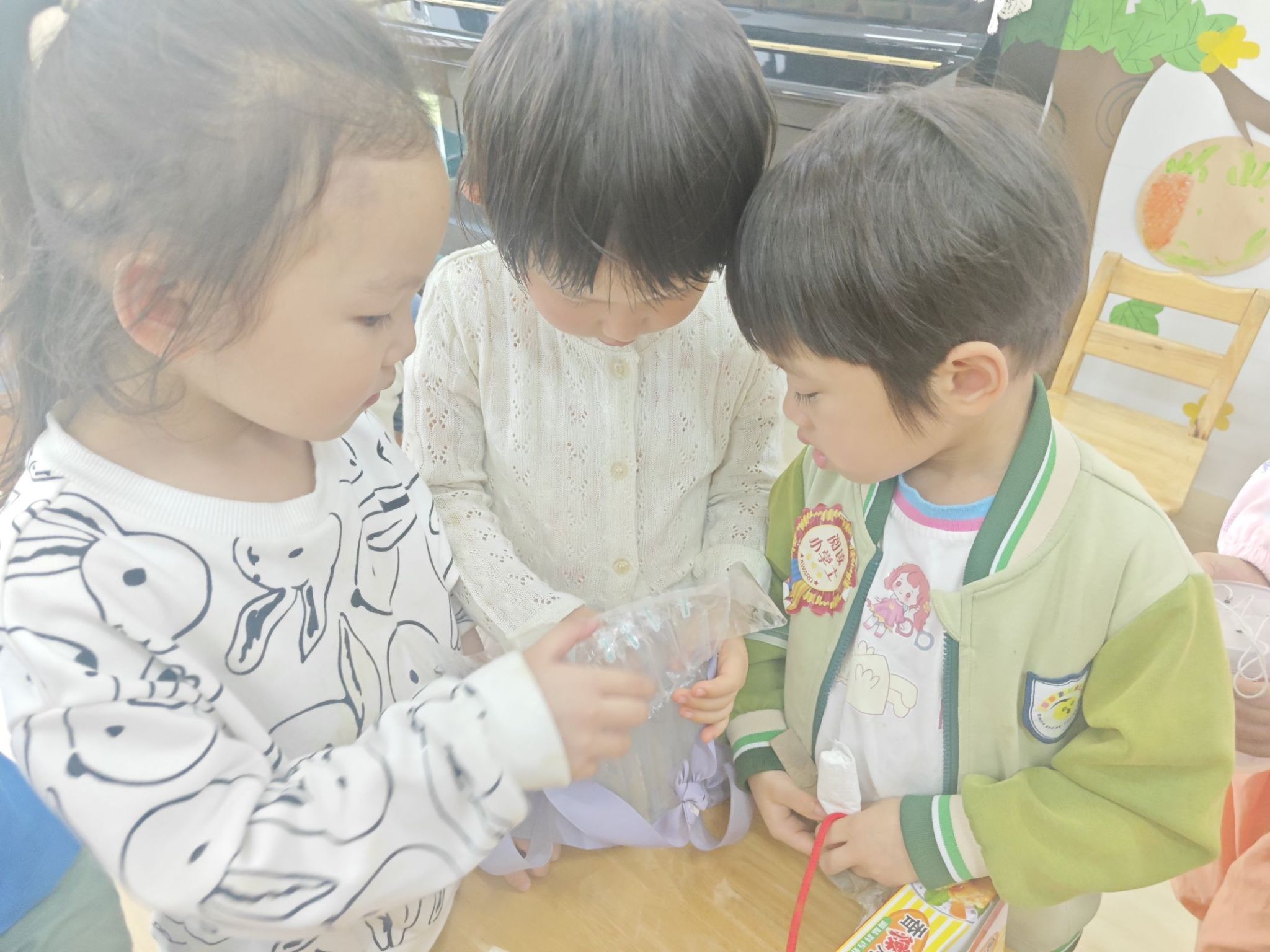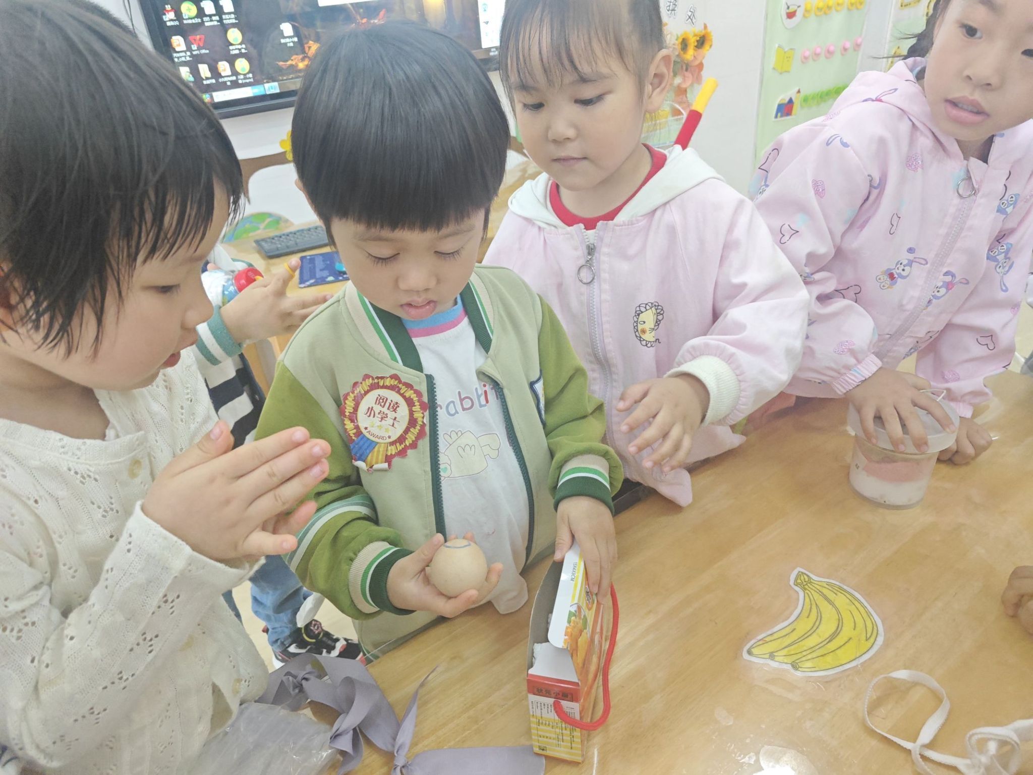 不仅如此,小朋友们带着蛋宝宝散步的时候还跟中班哥哥姐姐分享自己保护的蛋。带着蛋宝宝去看自己的最喜欢的植物,跟蛋宝宝说说悄悄话。
