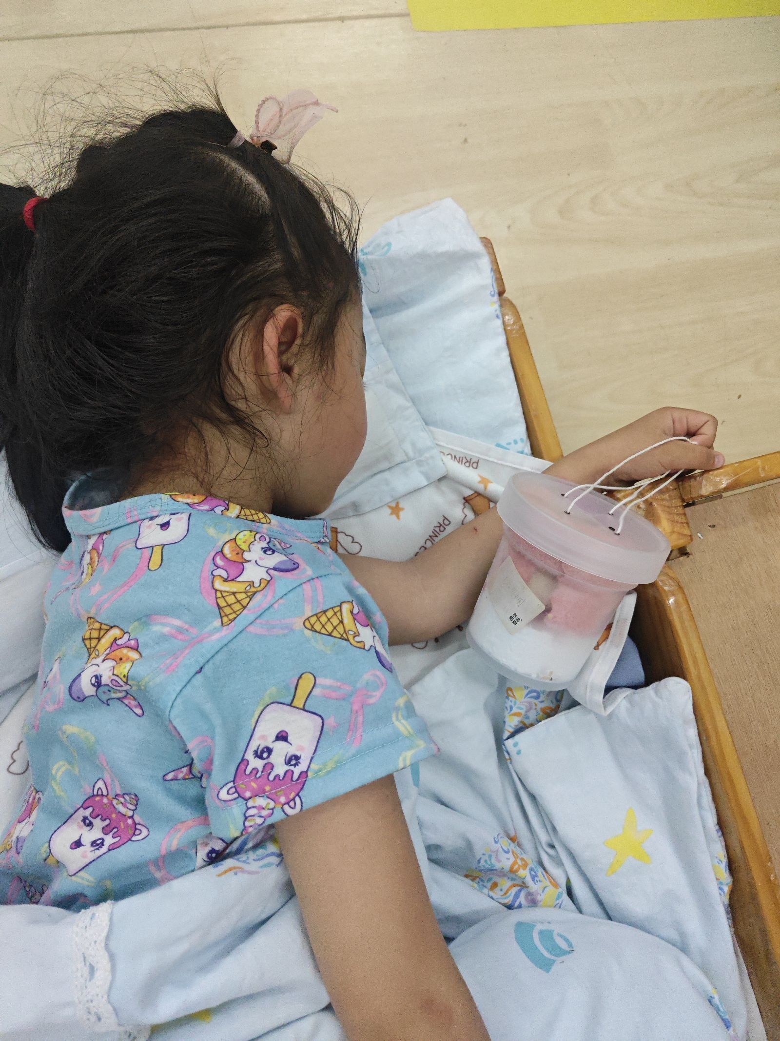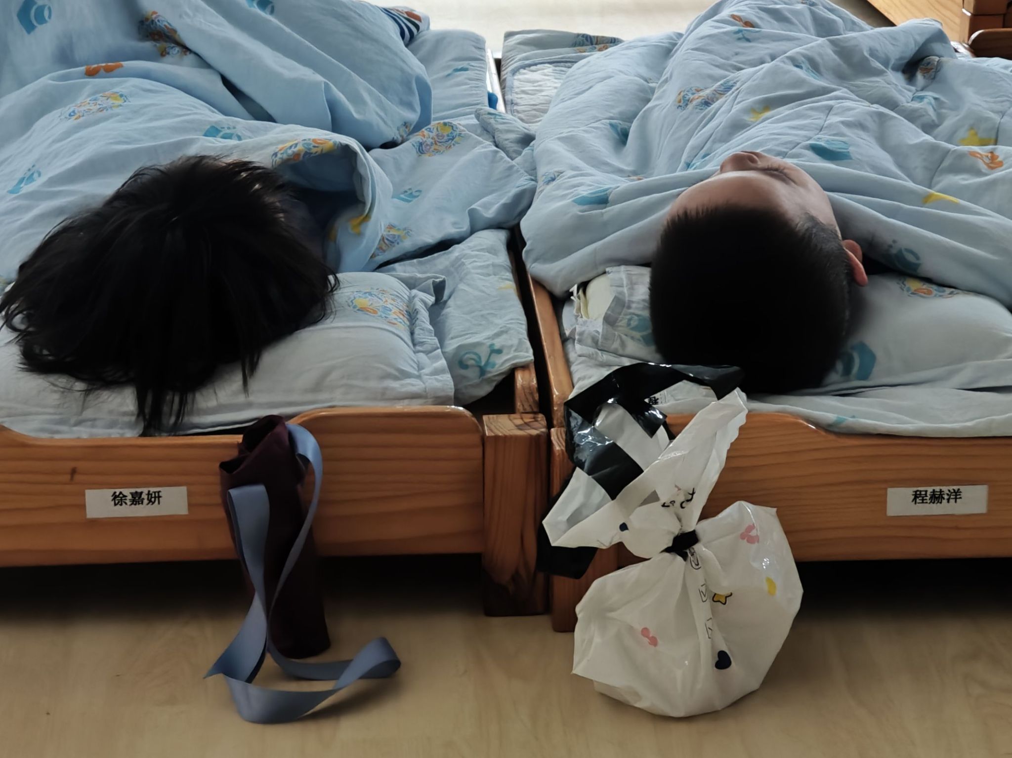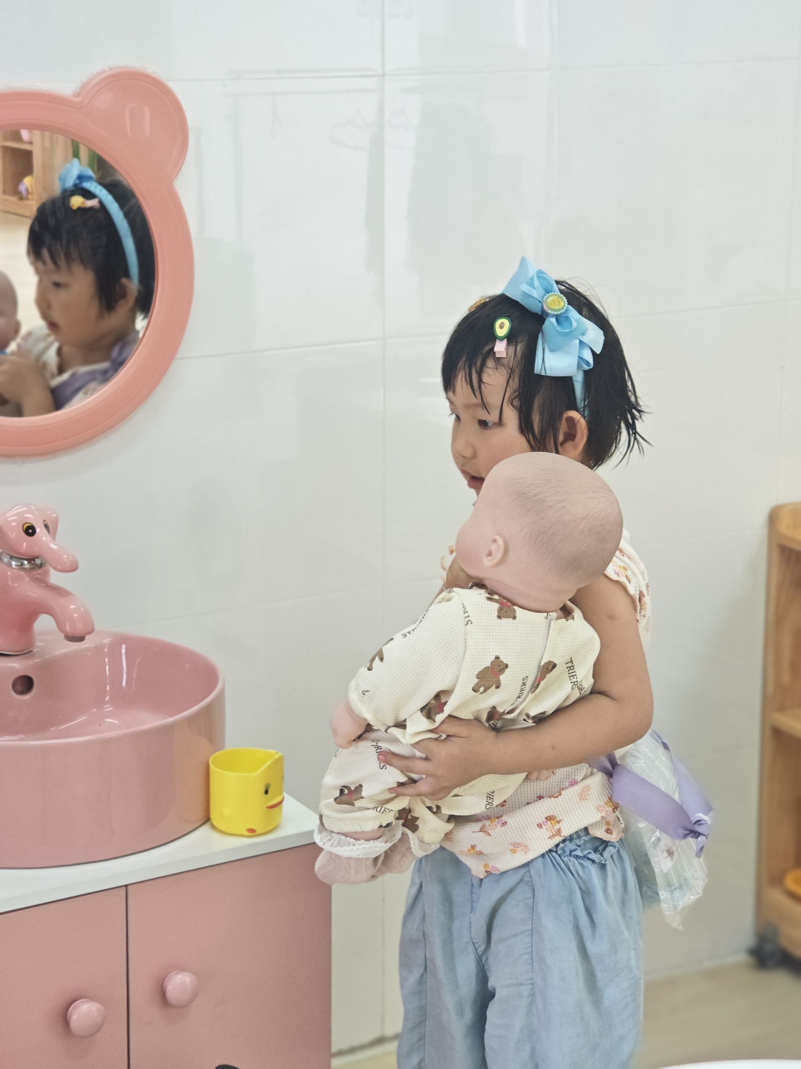 瞧!小朋友带着蛋宝宝在打水、在游戏、在上课、在睡……。做什么事情的时候都不能放下蛋宝宝哦!