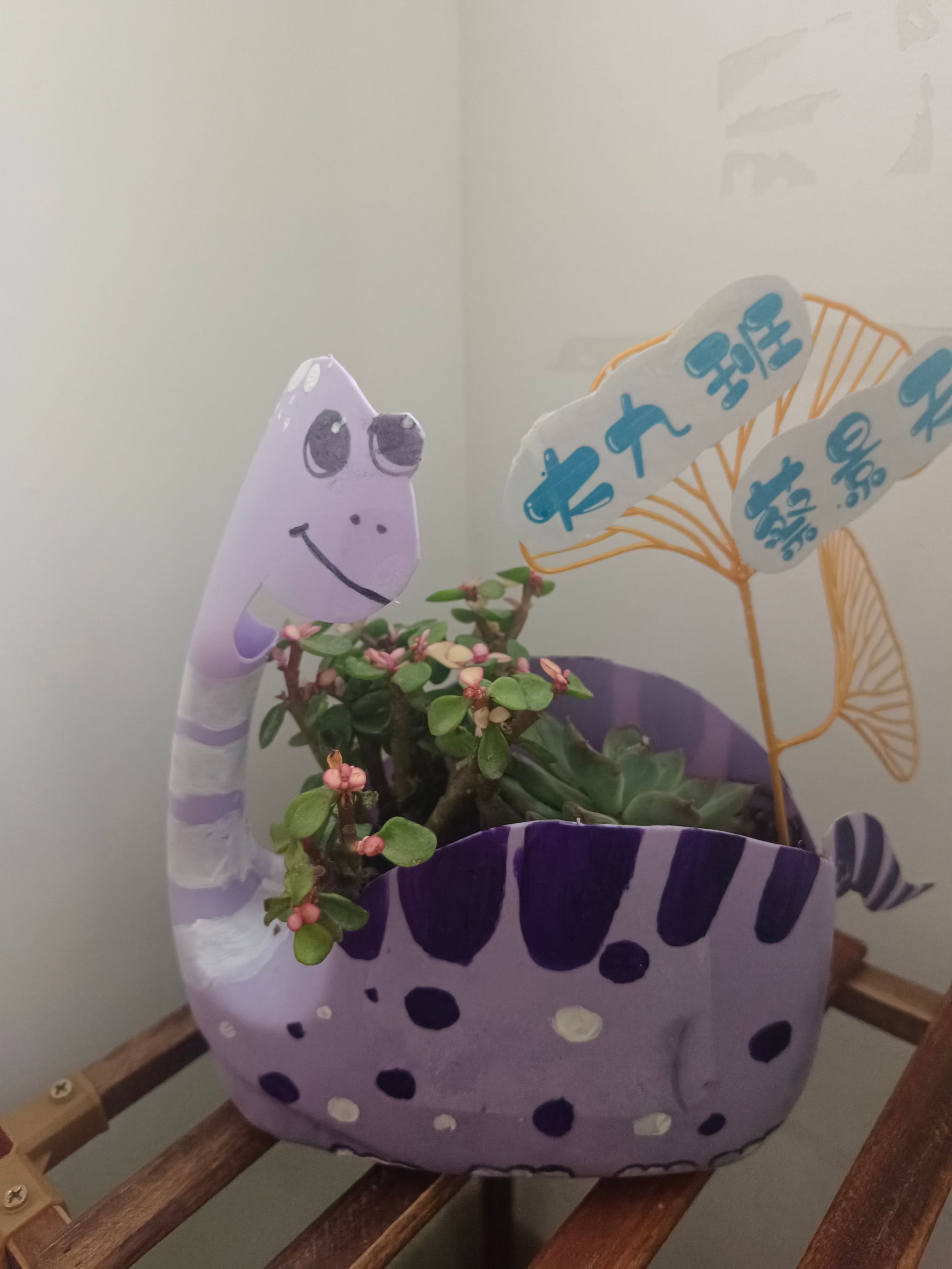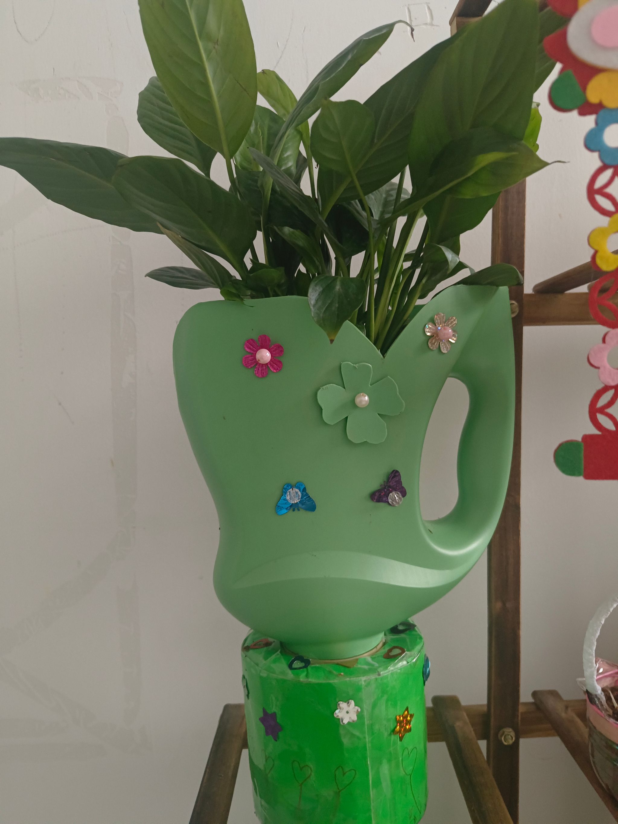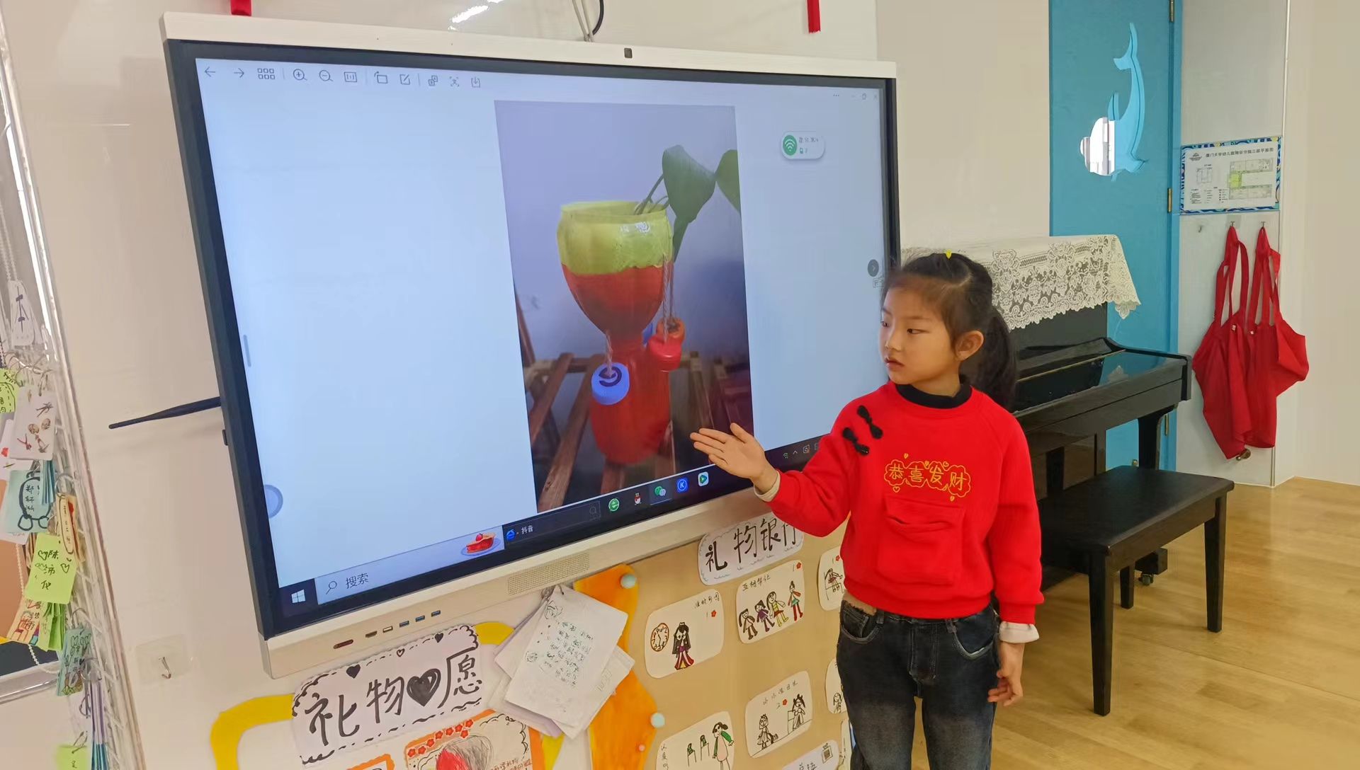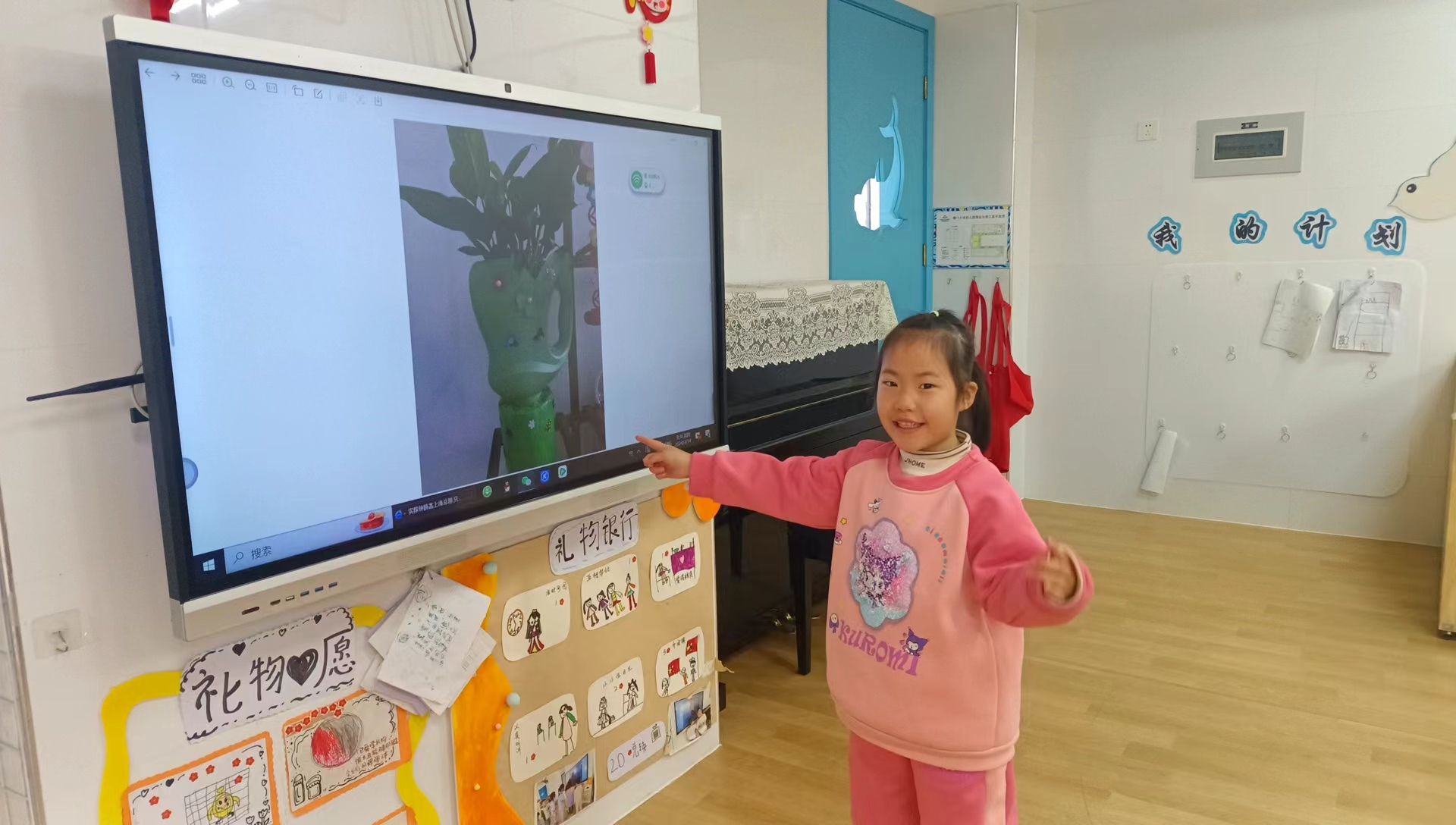 我们被稚嫩的童声吸引,原来大九班的孩子们正在举行一场别开生面的“创意花盆”设计比赛。孩子们各自讲述着自己的创意想法。让我们也一起来欣赏下孩子们的创意吧!