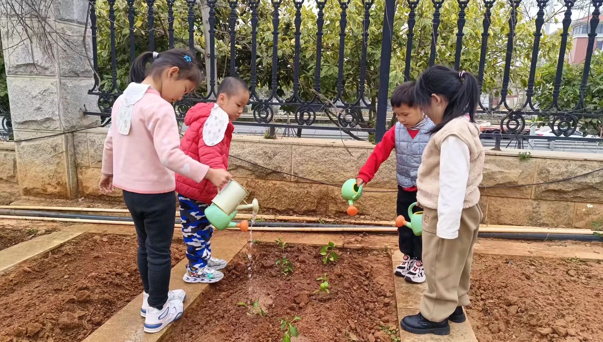 让我们跟随镜头看一看孩子们在这个春暖花开的季节,在属于大九班的种植区播下希望和爱的种子。
