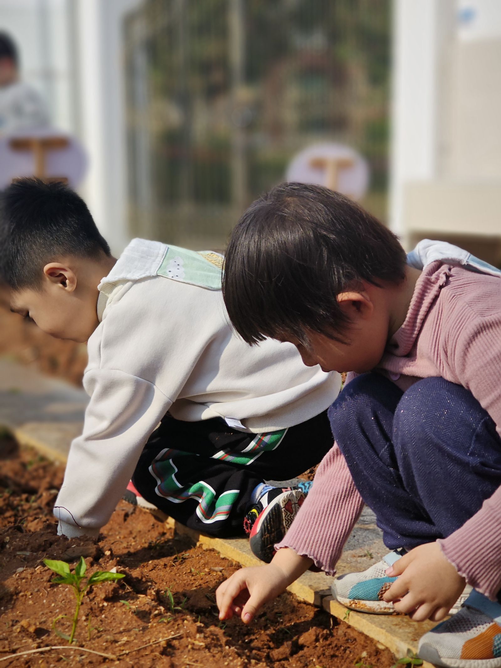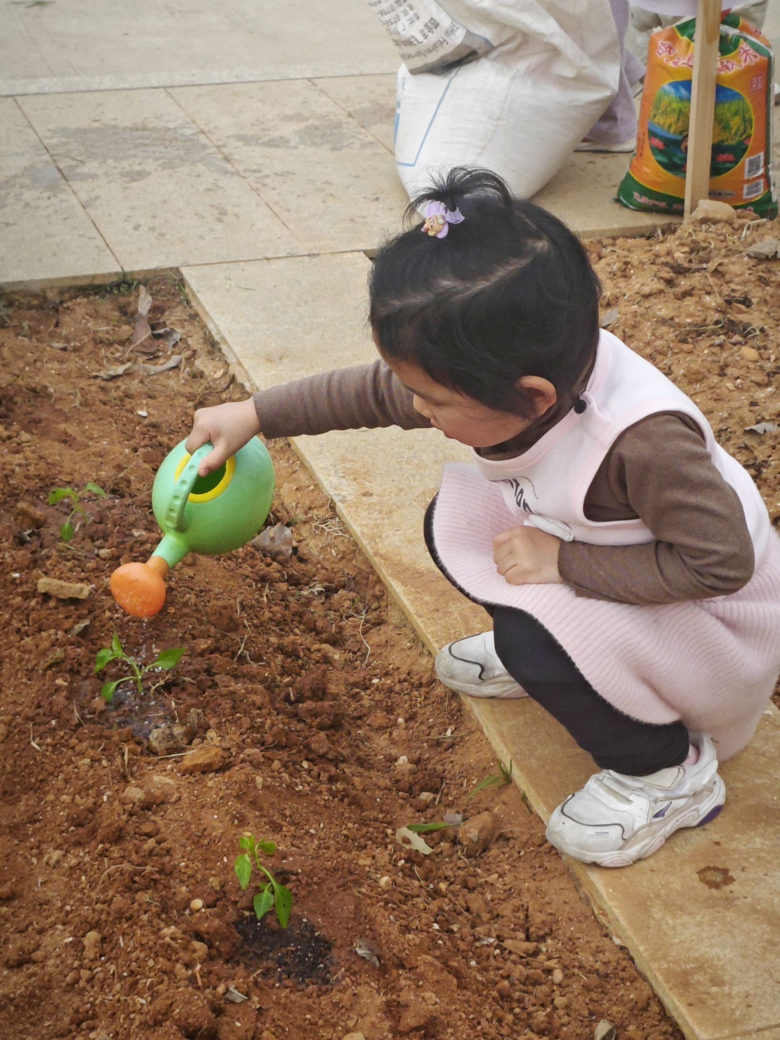 老师除了会给我们上课,还会带着我们去种想种的蔬菜。我们会定时去给它们拔草,浇水,期待着它们快快长大。