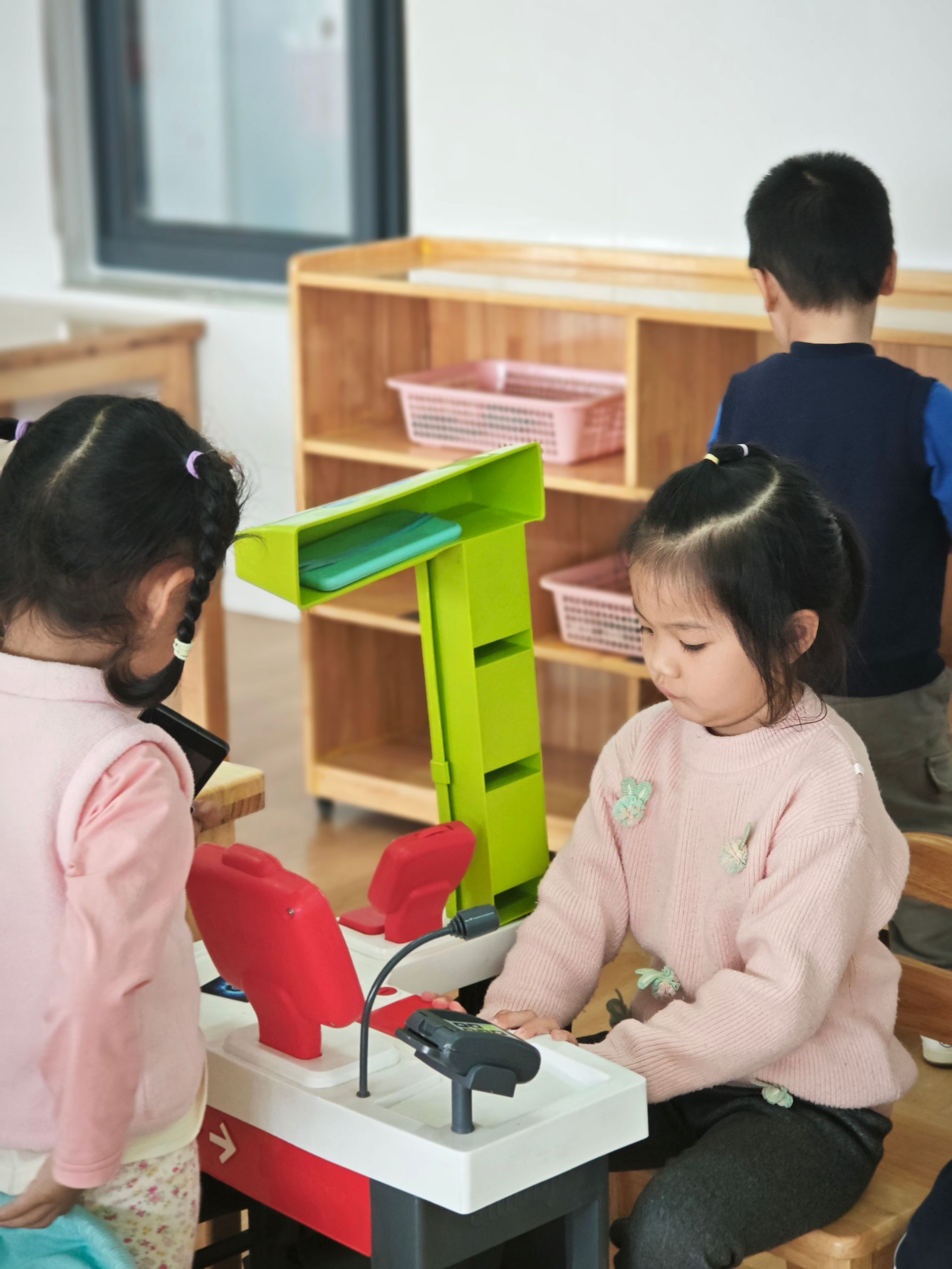 班级里也有很多区域玩具,有做手工的美工区、玩玩具的操作区、跟数学有关的益智区、搭建的建构区、看书的阅读区以外、还有我们最爱去的娃娃家。我们可以自己选择想去的地方。