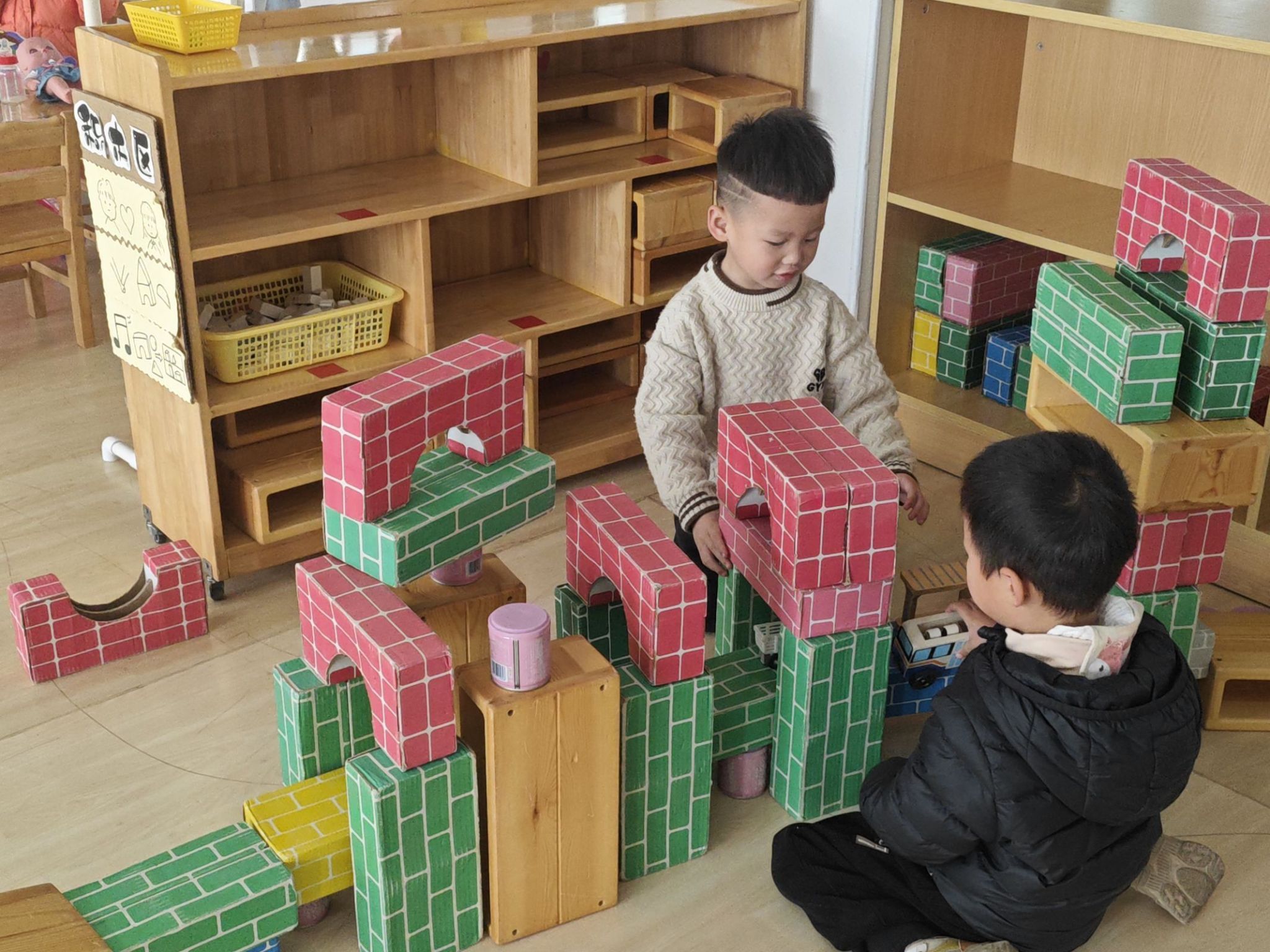 阅读室有很多的绘本,乐高室里的乐高积木很多,生活坊里我可以像爸爸妈妈一样成为一个小大人。建构室里的超大积木我可以随便搭。
