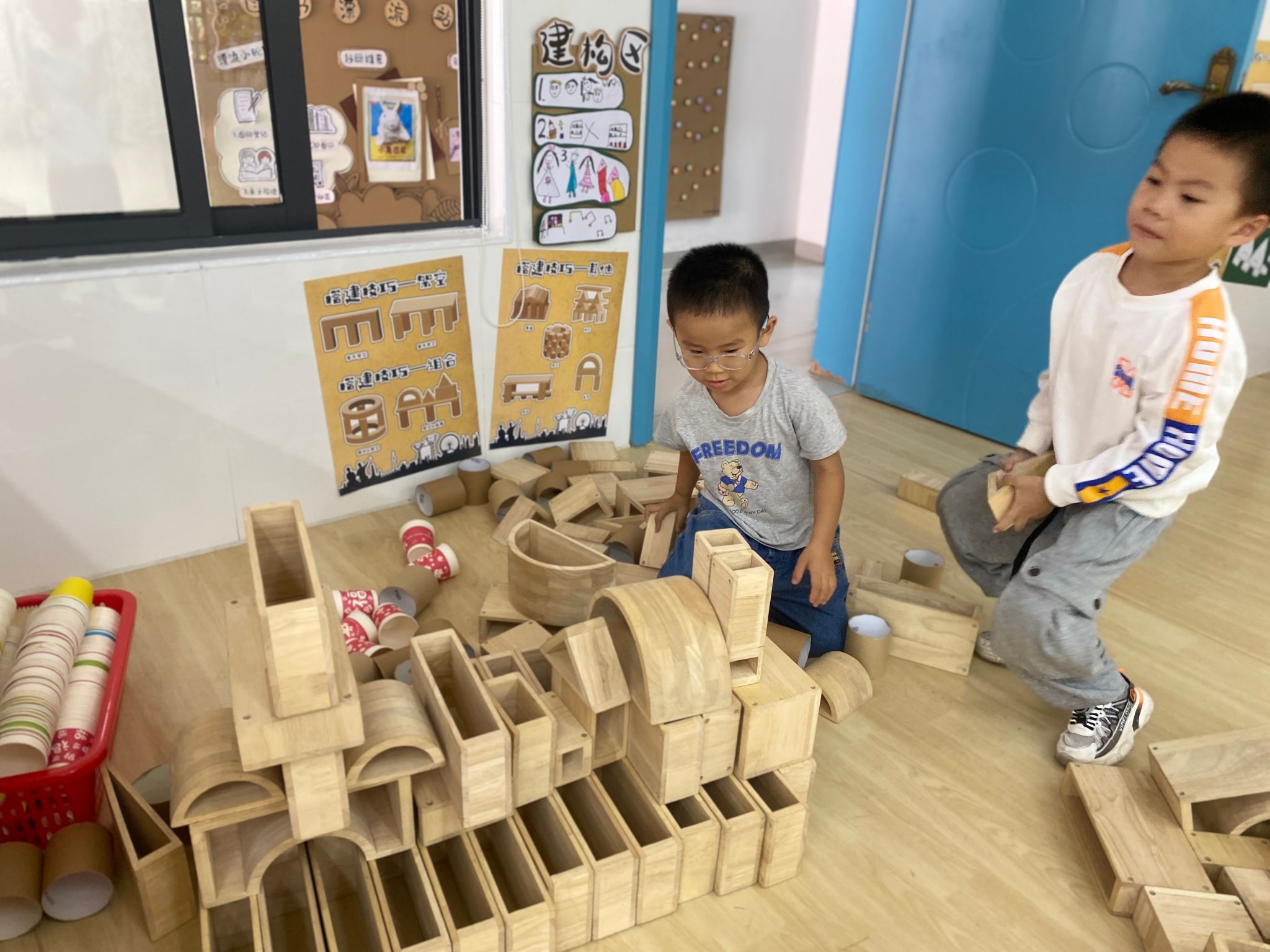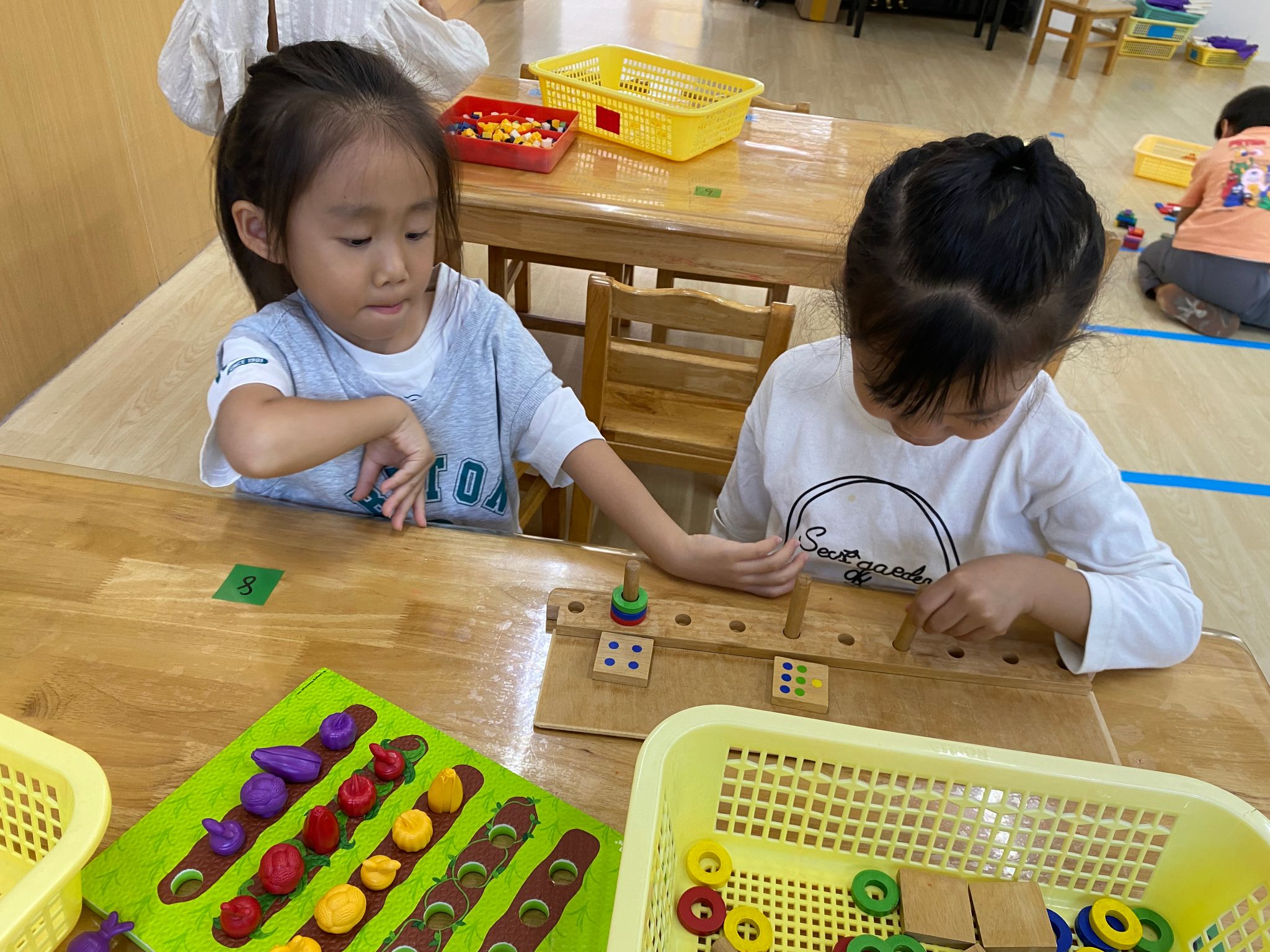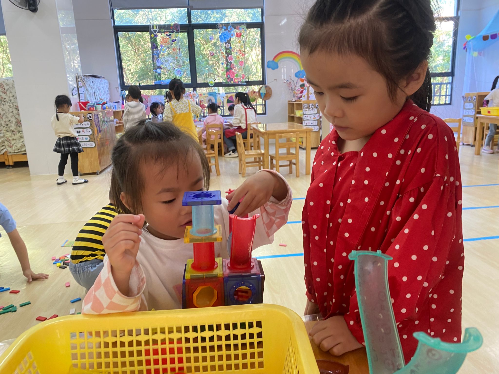 区域的时光也很欢乐哦,孩子们开动小脑筋,探索玩具里的秘密。