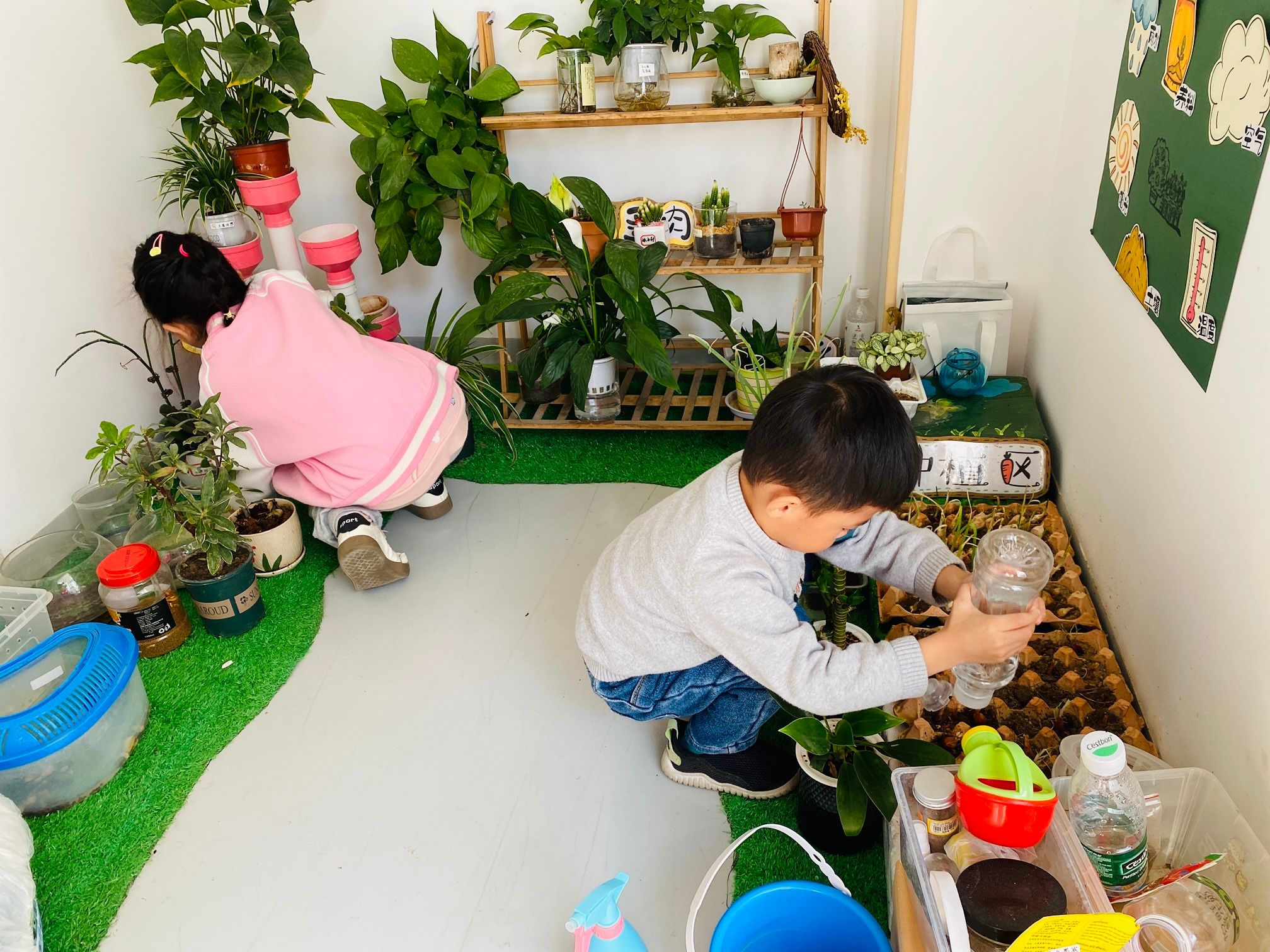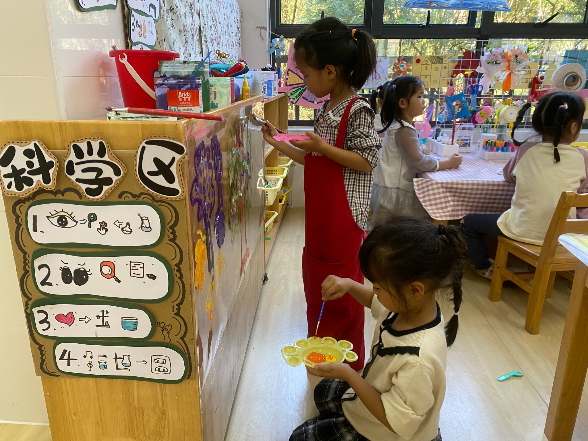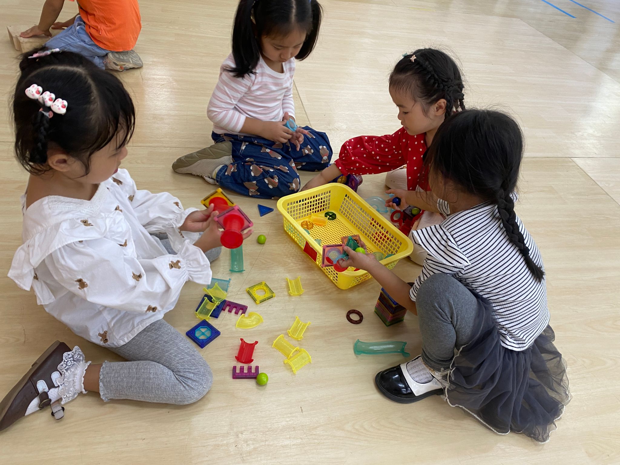 区域的时光也很欢乐哦,孩子们开动小脑筋,探索玩具里的秘密。