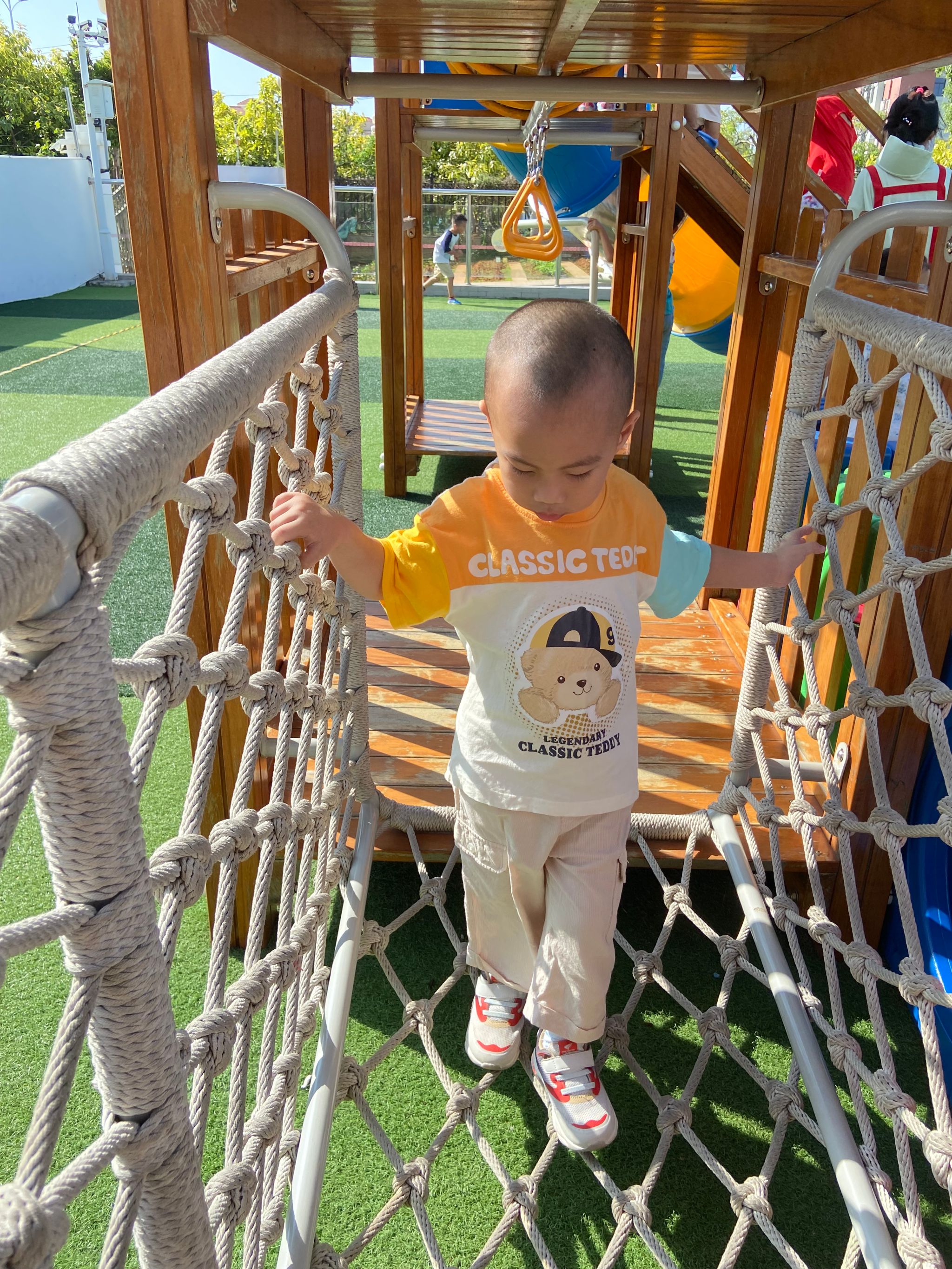 还有孩子们最喜欢的户外活动,通过轻松、愉悦、自主的游戏氛围,让孩子们在玩的过程中,不知不觉的学会了“钻、爬、跳、跨等技能”真正的在玩中发展了幼儿的身体技能,还能强身健体,是促进幼儿发展的有效途径。