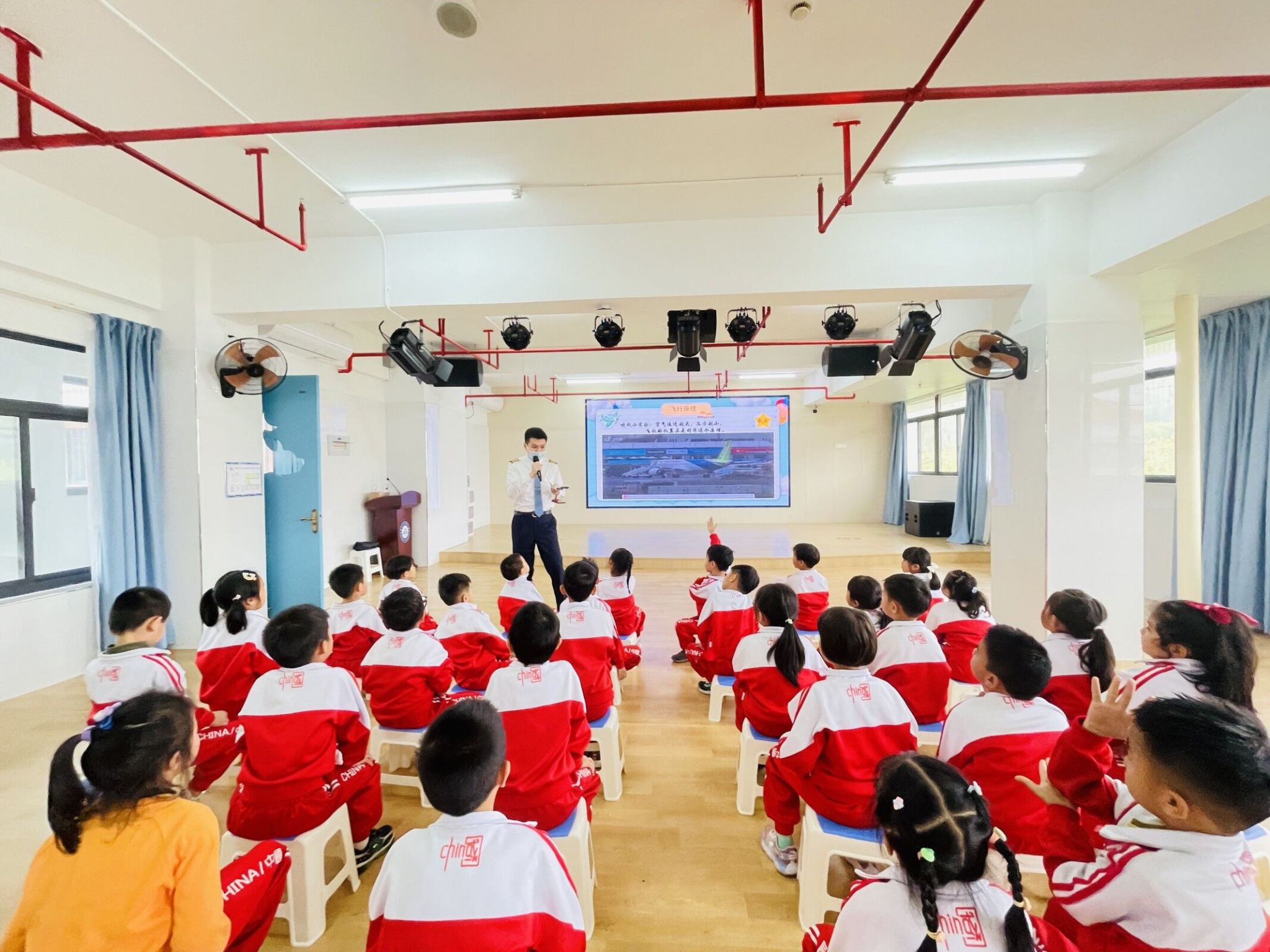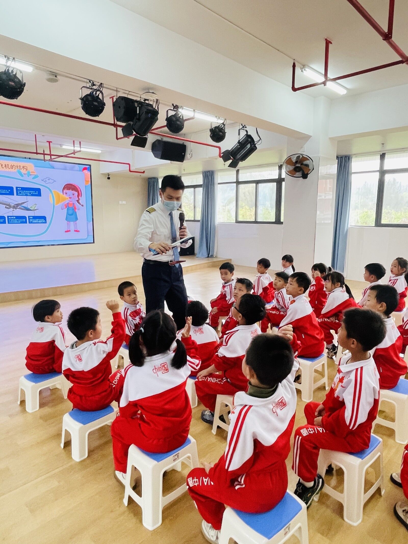 瞧!孩子们正在认真听着悦悦爸爸介绍的飞行知识呢!孩子们一个个好奇地观察着飞机的模型,热烈地讨论着机翼,机身等关于飞机的小秘密。